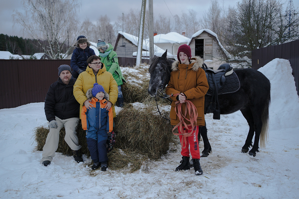 Никита ждет прогулки на лошади, деревня Чупряково Московской области. У семьи есть собственная лошадь, иппотерапия очень помогает в реабилитации ребятамФото: Мария Гельман для ТД Все положенные операции Никите сделали, еще когда он был в доме ребенка, — ноги и руки выпрямились, но не работали, и большего в России ему предложить не могли: нужно было ждать до 16 лет и качать мышцы спины. Приемные родители не хотели упускать время, но врачи не давали гарантий, что Никита будет ходить.