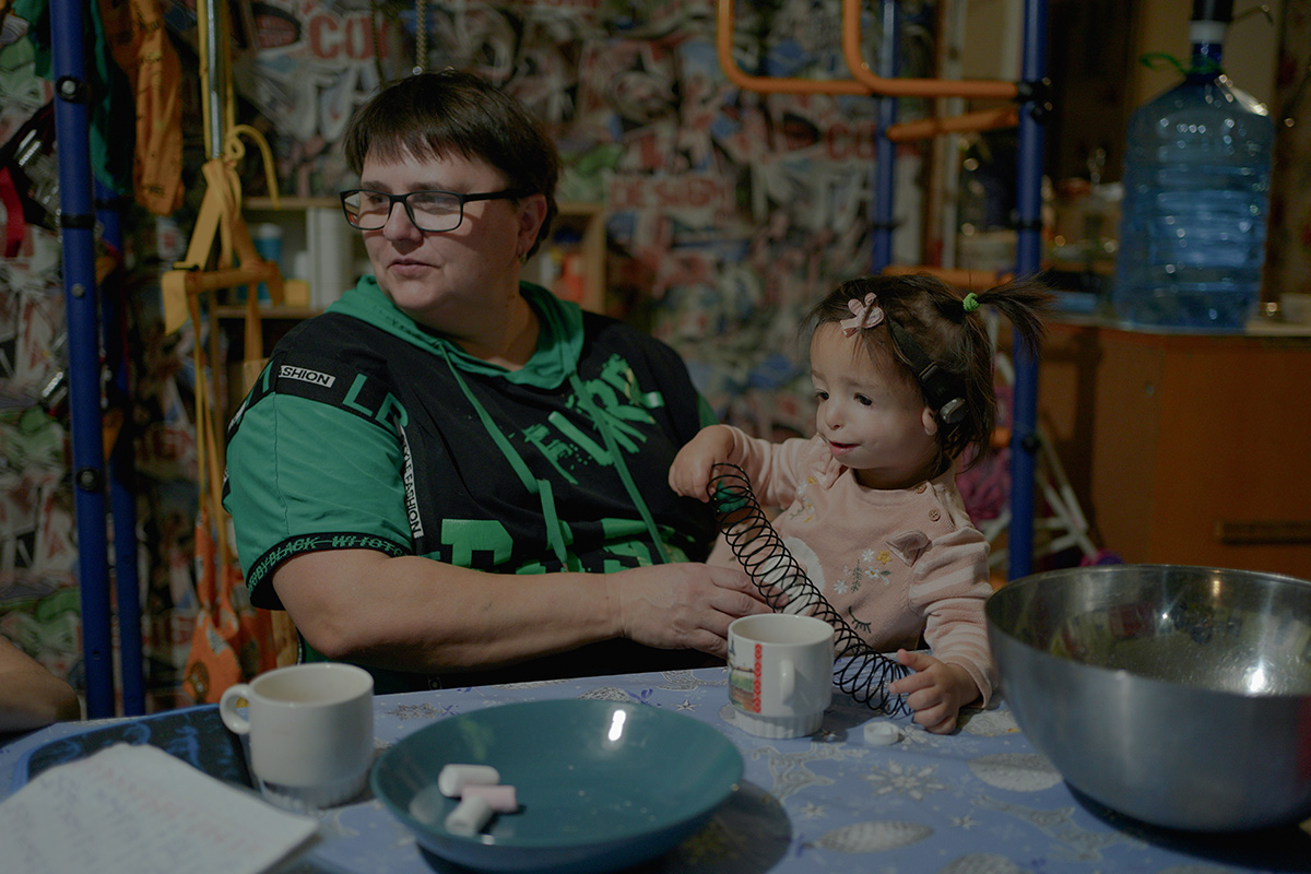 Нюся и мама Аня в гостиной дома, деревня Чупряково Московской областиФото: Мария Гельман для ТД Втроем с Максимом они увлекаются лыжами — даже ездили на бесплатные занятия в Красную Поляну. Никите, конечно, помогают инструкторы: возят за подмышки, пристегивая его лыжи к своим. Его ноги пока все еще не слишком слушаются — мальчик носит ортезы и между поездками в Испанию занимается в московских реабилитационных центрах.