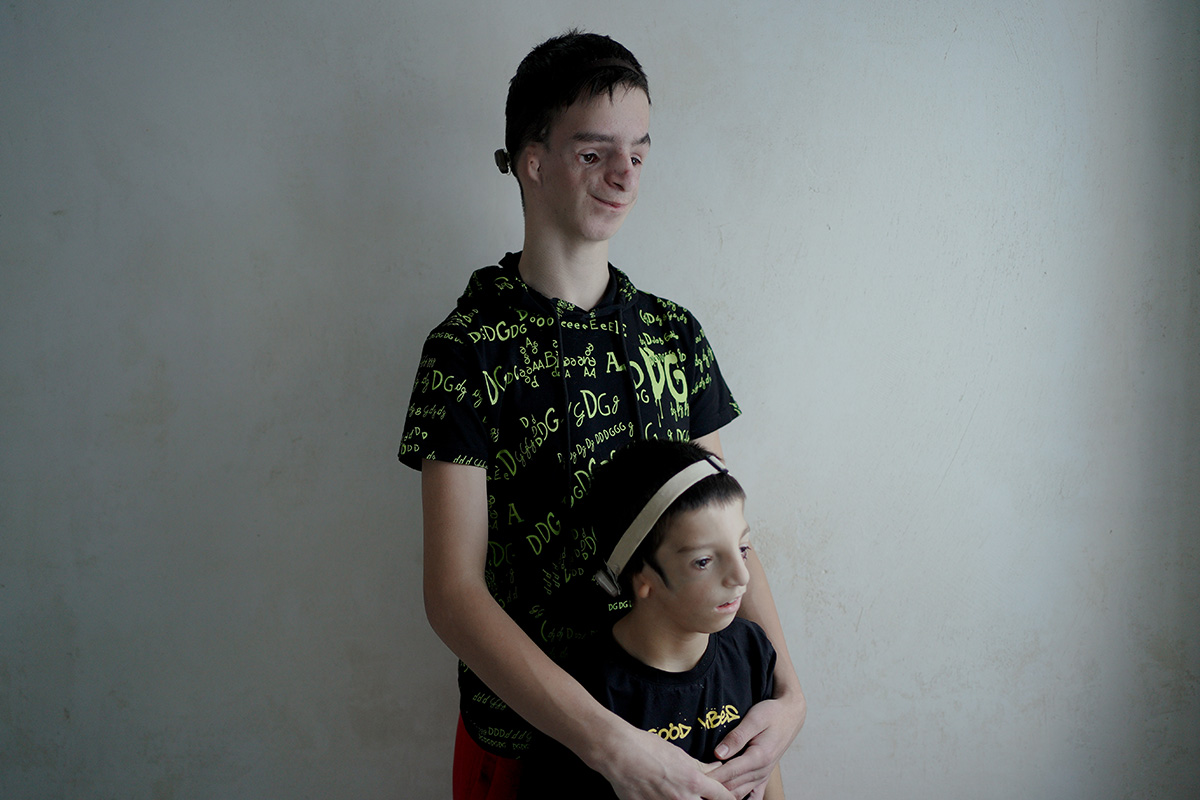 Портрет братьев Вани и Максима в их доме в деревне Чупряково Московской области. У Вани и Максима синдром Тричера КоллинзаФото: Мария Гельман для ТД «Клуб добряков» помогает и им. Ане оплатил операцию на нёбе за 200 тысяч рублей — по ОМС надо было бы ждать квоту. Ване приобрел немецкий дистрактор за 600 тысяч рублей для операции по ОМС на челюсти. Бесплатный дистрактор ему могли бы поставить, но лечение для ребенка было бы дольше и болезненнее.