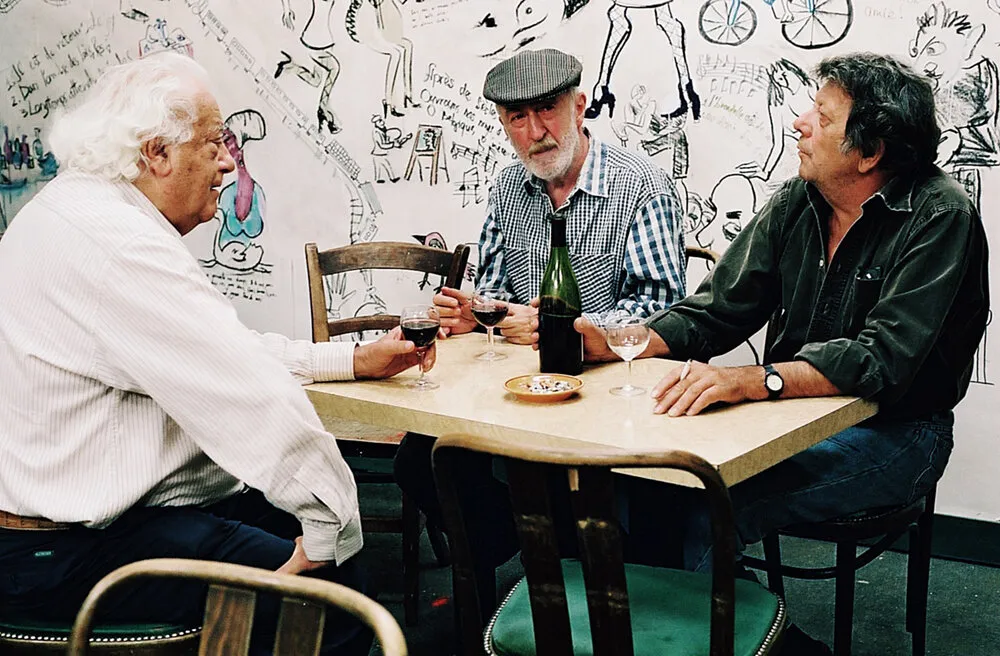 Вот «Истина в вине». Наверное, самая известная его картина. Сколько раз я ее смотрел? Миллион. Задумчивый, немного инфернальный, как и все такие птицы, дрессированный аист-марабу, взлетающий на руку шлюховато-стервозной мамаши, хозяйки салона, светской львицы среди нуворишей, которая летит на работу на вертолете («Она пилот, твоя мама?» — спрашивает закадровый голос Иоселиани). Непутевый, обаятельный негр лишается работы (работодатель — мамашин любовник), сын мамаши попадает за решетку, связавшись с нехорошей компанией, но возвращается как ни в чем не бывало прямо к фуршету-банкету на открытом воздухе на краю бассейна, а за то время, что он отбывал срок, какие-то случайные, эпизодические парижские бегуны успевают набегать себе малыша в коляске и теперь продолжают бегать уже втроем, с коляской… Еще, конечно, вот этот жест, этот поворот руки с бокалом через себя, с которым сын пьет кальвадос, отваживая ухажеров дочки бармена, за которой пытается ухлестывать! Мне интересно, сколько человек, посмотревших этот фильм, попытались повторить этот жест с бокалом? Мне кажется, все.