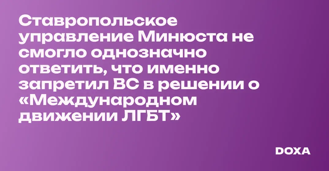 Ставропольское управление Минюста не смогло однозначно ответить, что именно запретил ВС в решении о «Международном движении ЛГБТ»