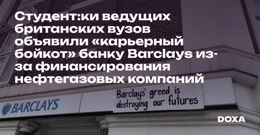 Студент:ки ведущих британских вузов объявили «карьерный бойкот» банку Barclays из-за финансирования нефтегазовых компаний