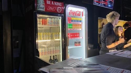 Цены на алкоголь — 400 рублей за банку пива, бутылка шампанского доходит до 23 тысяч. Самое дешевое на баре — «Добрый Cola», около 300 рублей, как вода. В основном берут пластиковые стаканчики с пивом.
