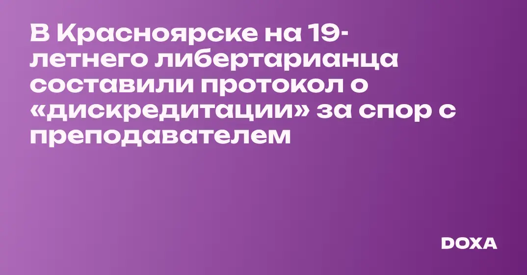 В Красноярске на 19-летнего либертарианца составили протокол о «дискредитации» за спор с преподавателем