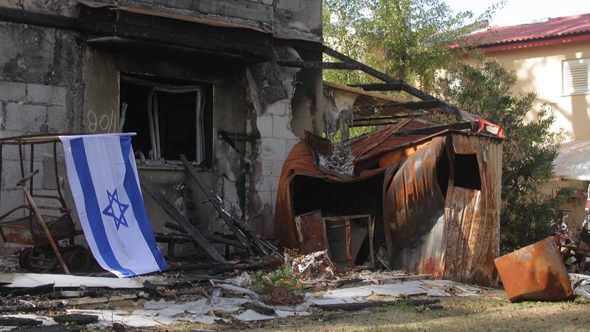 Один из журналистов спрашивает его, почему здесь есть дома, которые выглядят невредимыми. Он объясняет, что в таких зданиях людей убили прямо в убежищах — это отдельная комната с укрепленными стенами, защищающая от ракетных обстрелов. На стенах некоторых домов можно заметить надписи на арабском. Рядом с каждой из них уже написано на иврите: «Народ Израиля жив».