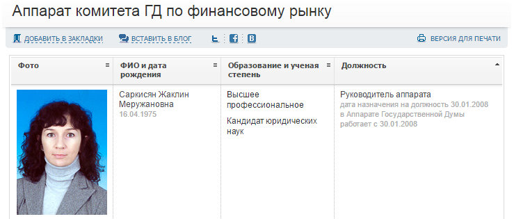 Бизнес Внешпромбанка был основан на личных связях Ларисы Маркус, следует из статей в «Ведомостях», РБК и Forbes, препарировавших банк после его громкого краха в 2016 году. «За 10 лет она познакомилась со многими чиновниками и политиками, не было, наверное, ни одного депутата Госдумы из финансово-экономических комитетов, который бы ее не знал», — рассказывал Forbes знакомый Маркус. Жаклин Саркисян к тому времени как раз перешла из Счетной палаты на должность руководителя аппарата комитета Госдумы по финансовым рынкам. Глава комитета, депутат Наталья Бурыкина была одним из VIP-вкладчиков банка.