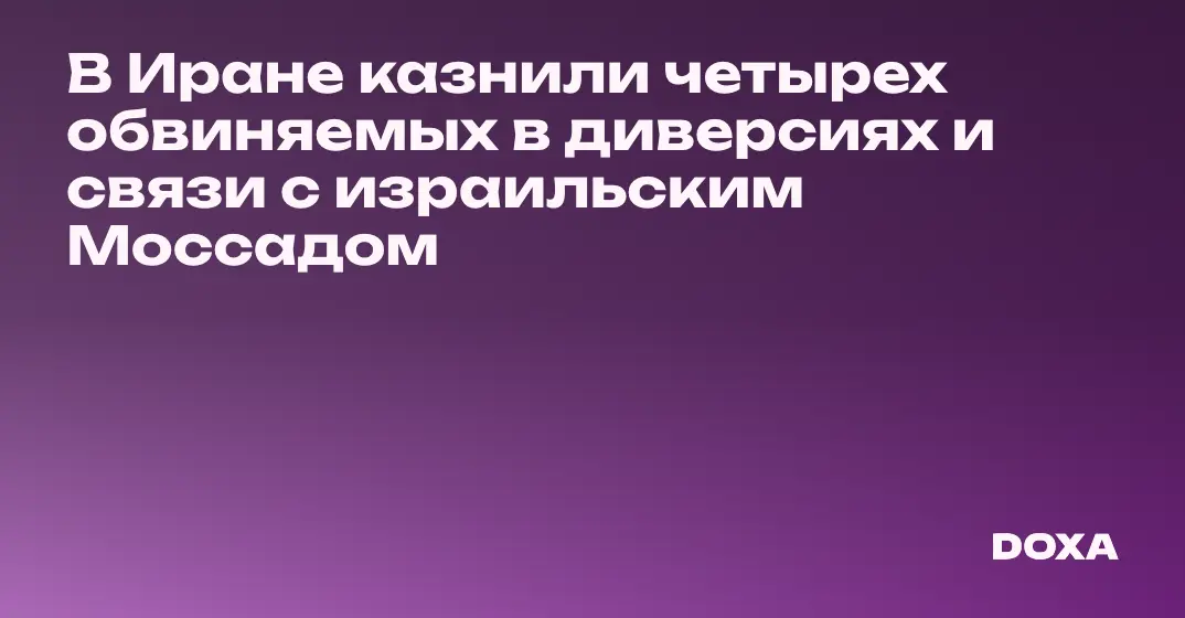 Четырех человека, в том числе женщину, обвиняемых в «диверсии» и связи с израильской разведывательной службой Моссад, казнили в Иране утром 29 декабря.