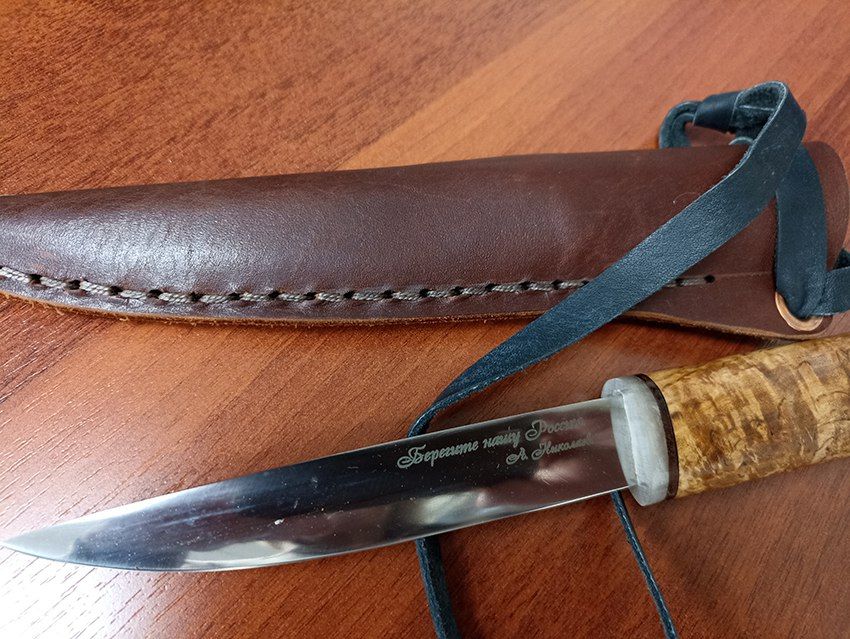 Исходя из документов суда, на лезвии имелась надпись "Берегите нашу Россию. А. Николаев". Как отмечают в "7x7", партию таких ножей для "ветеранов СВО" заказали якутские власти. Журналисты пишут, что чиновники закупили 849 таких ножей за 8,6 миллиона рублей. Глава Якутии Айсен Николаев лично дарил их военным. Его фамилия указана на лезвиях.