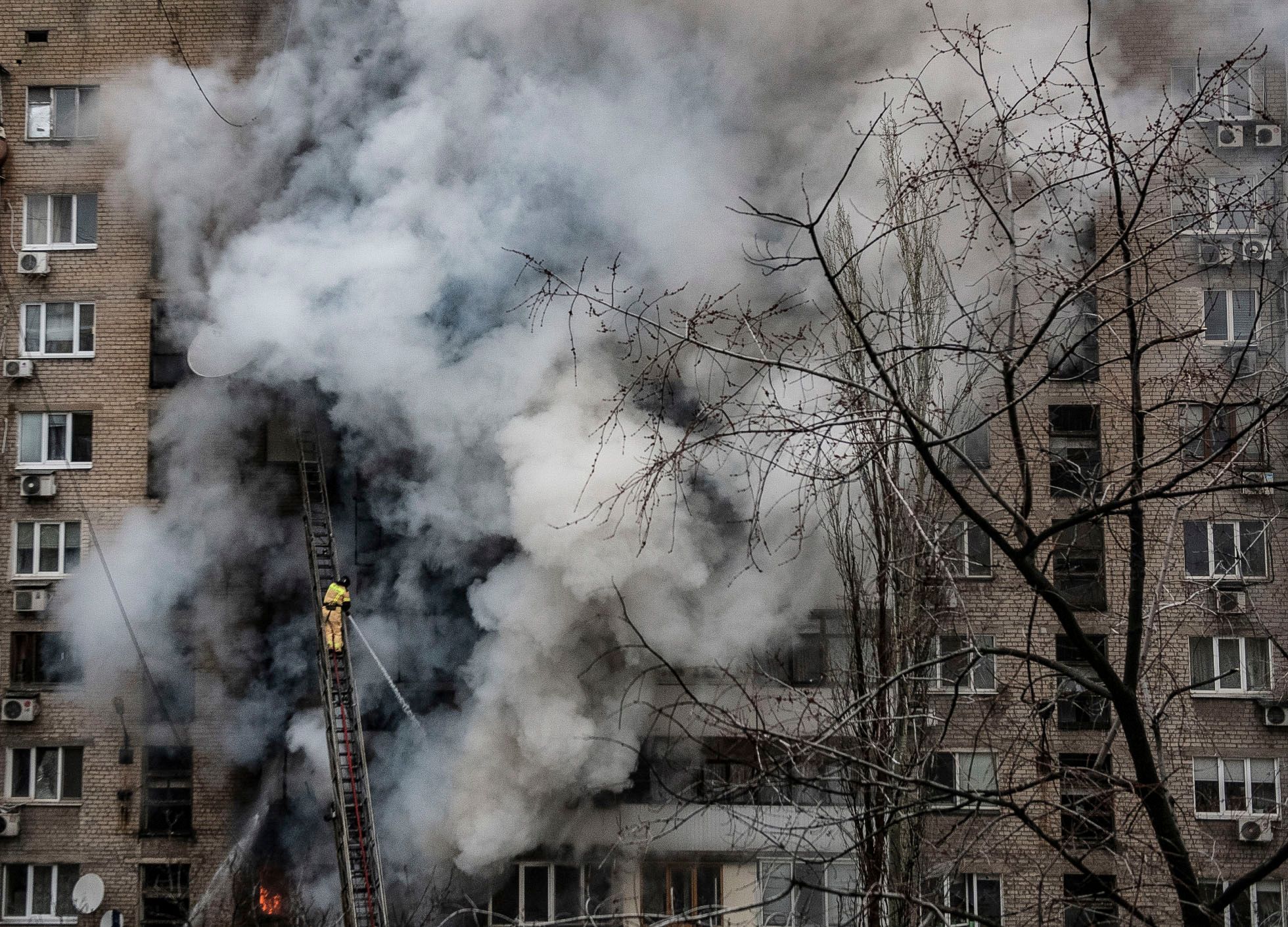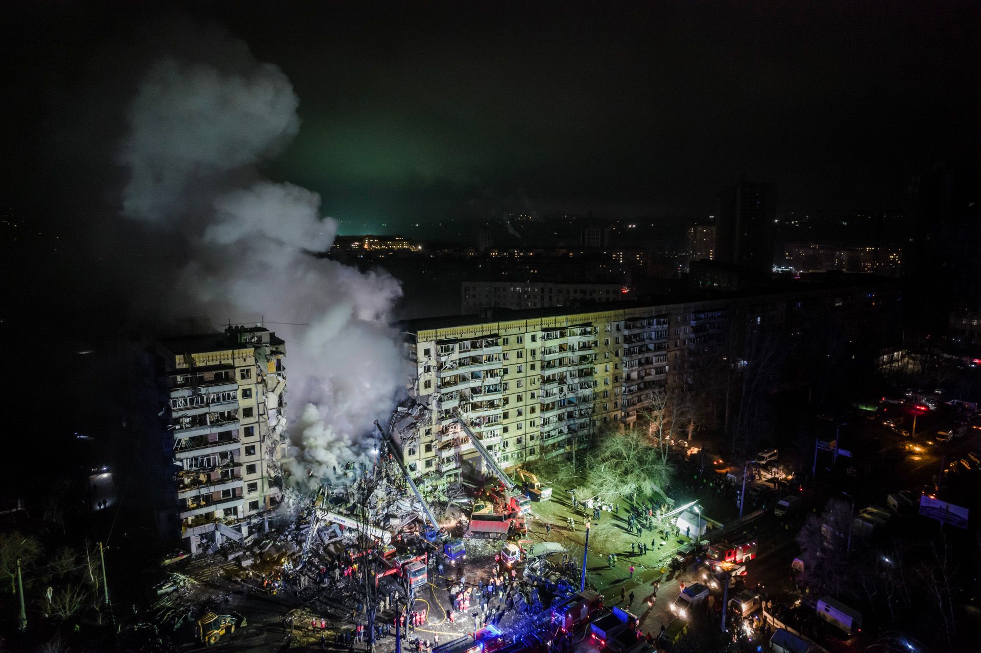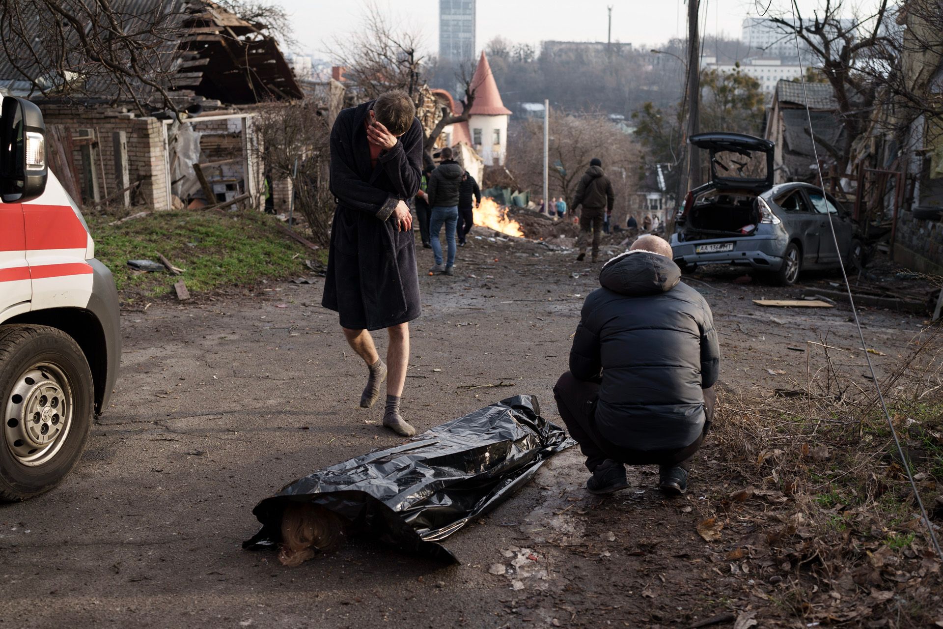 Roman Hrytsyna / AP / Scanpix / LETA Житель Киева плачет возле тела своей жены, погибшей во время ракетного удара. Российские войска ударили по Киеву ракетами и беспилотниками в последний день 2022 года. Пострадали 20 человек, погибла одна мирная жительница. «Российский Новый год за праздничным столом — это кадры разбитых в Украине жилых домов, новости о человеке, погибшем от обломка ракеты в Соломенском районе Киева», — прокомментировал произошедшее замглавы Офиса президента Украины Кирилл Тимошенко. 31 декабря 2022 годаPavlo Palamarchuk / Anadolu Agency / ABACAPRESS / ddp images / Vida Press Львов во время отключения электроэнергии. Из-за российских обстрелов в начале 2023 года во Львове и других городах Украины ежедневно отключали свет на период от 8 до 16 часов — в зависимости от ситуации в энергосистеме. 12 января 2023 годаGleb Garanich / Reuters / Scanpix / LETA Сотрудница киевского зоопарка топит печь, чтобы согреть 48-летнюю гориллу по имени Тони во время планового отключения электричества. 31 января 2023 годаWojciech Grzedzinski / The Washington Post / Getty Images Спасательные работы в Днепре. Ракетный удар по городу 14 января стал самой разрушительной атакой на мирный объект в Украине с июня 2022 года, когда под обстрел попал торговый центр «Амстор» в Кременчуге. В Днепре ракета попала в девятиэтажный жилой дом, убив 45 человек, в том числе шестерых детей, и ранив 80 мирных жителей, среди них — 16 детей. 14 января 2023 годаRoman Hrytsyna / AP / Scanpix / LETA Жительница Днепра ищет свою кошку во дворе жилого дома, разрушенного российской ракетой. Испуганное животное не далось в руки спасателям, которые пытались унести его с места удара и передать хозяйке. 14 января 2023 годаYan Dobronosov / Reuters / Scanpix / LETA Кухня в одной из квартир жилой девятиэтажки в Днепре, разрушенной российским ударом. 15 января 2023 годаEvgeniy Maloletka / AP / Scanpix / LETA Пожар после российского обстрела Константиновки Донецкой области. Ракета повредила газовую трубу. По данным городской военной администрации, обошлось без пострадавших. Константиновка находится примерно в 20 километрах к западу от Бахмута, где в это время шли тяжелые бои. 6 марта 2023 годаGleb Garanich / Reuters / Scanpix / LETA Украинские военные с помощью прожекторов ищут в небе российские беспилотники. Ночь с 31 декабря 2022 года на 1 января 2023 года