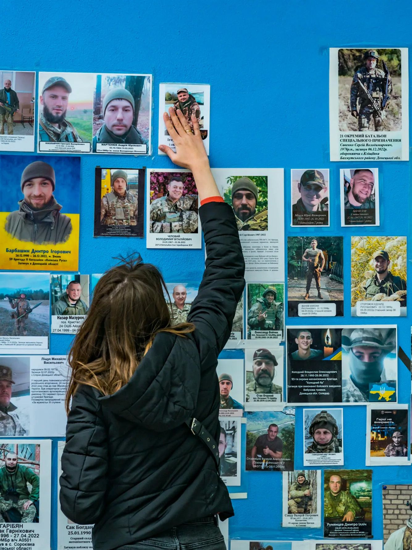 Жительница Киева у Стены памяти павших защитников, установленной у входа в Михайловский Златоверхий монастырь. 8 мая 2023 года. Celestino Arce Lavin / ZUMA Press Wire / Scanpix / LETA