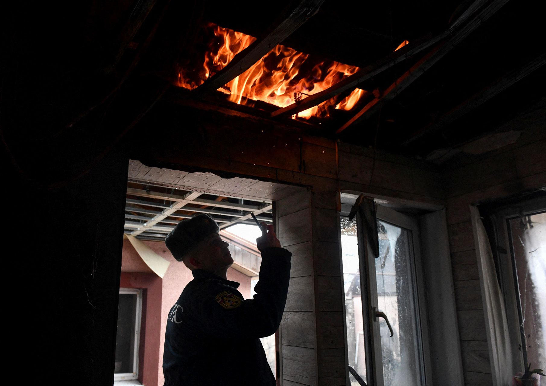 Alexander Ermochenko / Reuters / Scanpix / LETA Дети рядом с телом женщины, погибшей в результате обстрела Волновахи Донецкой области. Волноваха — город примерно в 50 километрах к югу от аннексированного Донецка. Через Волноваху проходят автомобильный и железнодорожный маршруты из Донецка в Мариуполь. Обстрел, в котором назначенные Кремлем местные власти обвинили ВСУ, произошел 13 марта. Помимо женщины на фотографии — Валентины Коваль, — погибла ее 18-летняя племянница Даниэлла. 13 марта 2023 годаReuters / Scanpix / LETA Цистерны с топливом, загоревшиеся после украинского обстрела в Буденновском районе Донецка. Глава оккупационной администрации ДНР Денис Пушилин сообщил, что в результате обстрела погибли два жителя, в том числе сотрудник МЧС, пострадали 12 человек. «Известия» сообщают, что среди раненых были трое журналистов издания. Также под обстрел попал фотокорреспондент ТАСС. 31 октября 2023 годаAlexander Ermochenko / Reuters / Scanpix / LETA Жительница Донецка после украинского обстрела 6 апреля. По данным властей оккупированного города, под удары попали Петровский и Куйбышевский районы. РИА Новости сообщали о пяти погибших. «Интерфакс» со ссылкой на управление Следственного комитета РФ в аннексированнойДНР писал о девяти погибших и семерых раненых. 6 апреля 2023 годаВалерий Мельников / Reuters / Scanpix / LETA Спасатель в жилом доме, поврежденном украинской ракетой во время обстрела Донецка 30 ноября. По данным РИА Новости, во время атаки пострадала мирная жительница. 30 ноября 2023 годаВалерий Мельников / Коммерсант / SIPA USA / Scanpix / LETA Многоквартирный жилой дом в Донецке, в который 19 декабря попала украинская ракета. «Известия» писали, что из-за удара с первого по девятый этаж дома загорелась газовая труба. По данным назначенного Кремлем мэра города Алексея Кулемзина, пострадали шестеро мирных жителей. 19 декабря 2023 года