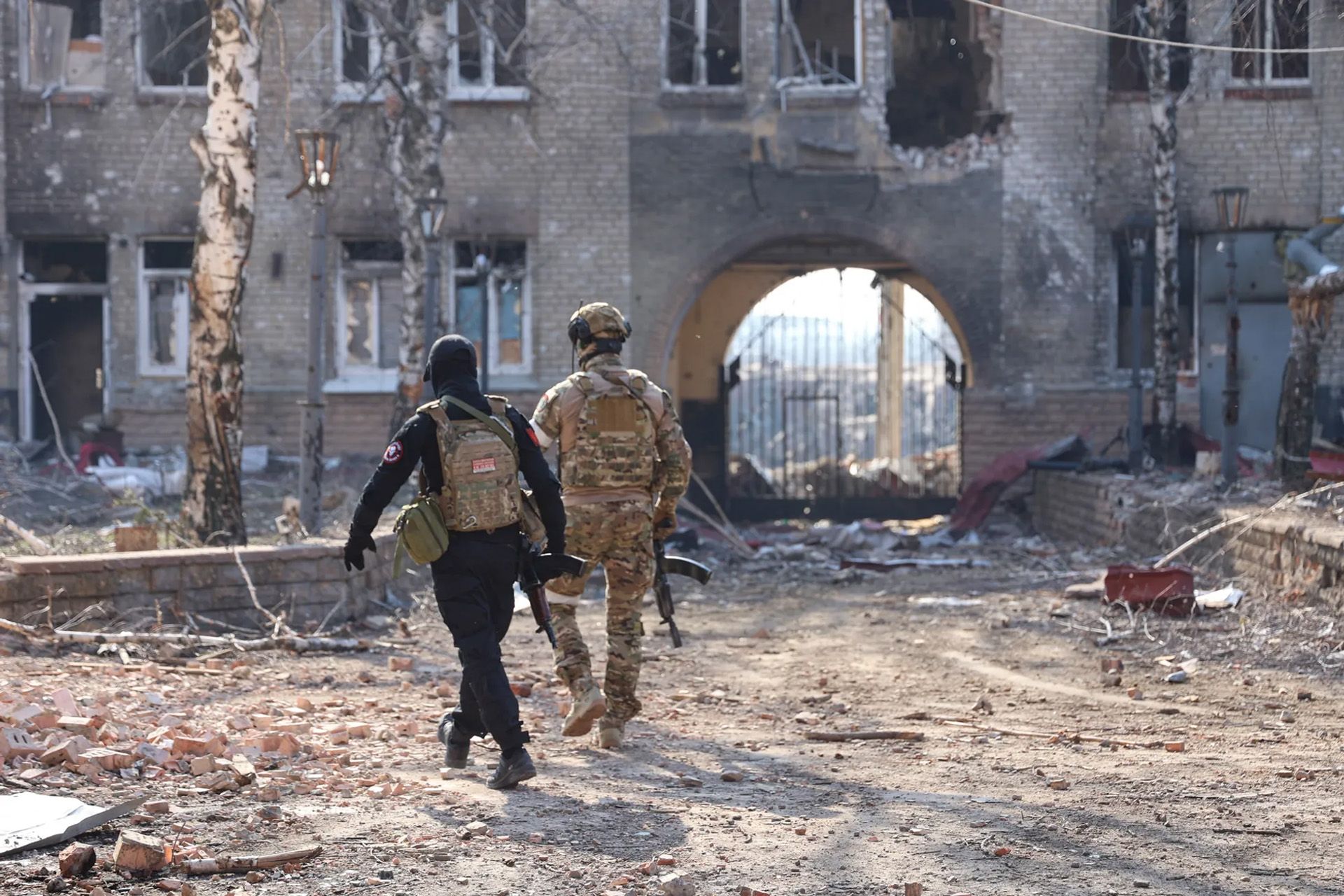 Marek M. Berezowski / Anadolu Agency / ABACAPRESS / ddp images / Vida Press Украинские военные переправляются через речку Бахмутка в Бахмуте по импровизированному мосту из поддонов. 29 января 2023 годаDiego Herrera Carcedo / Anadolu Agency / ABACAPRESS / ddp images / Vida Press Украинские военные досматривают связанного российского пленного. 12 января 2023 годаEvgeniy Maloletka / AP / Scanpix / LETA Украинские военные врачи оперируют раненого бойца ВСУ в полевом госпитале. 9 января 2023 годаAnatolii Stepanov / AFP / Scanpix / LETA Украинский вертолет в небе над Бахмутом. 17 января 2023 годаНаемники ЧВК Вагнера идут мимо дома, разрушенного во время боев. В боях за Бахмут российская сторона была представлена преимущественно «вагнеровцами»: к 18 марта они взяли под контроль около 70% территории города, полностью захватив его в середине мая. 25 марта 2023 годаВид на разрушенный Бахмут. Глава ЧВК Вагнера Евгений Пригожин объявил о полном взятии города в середине мая. 27 мая 2023 года