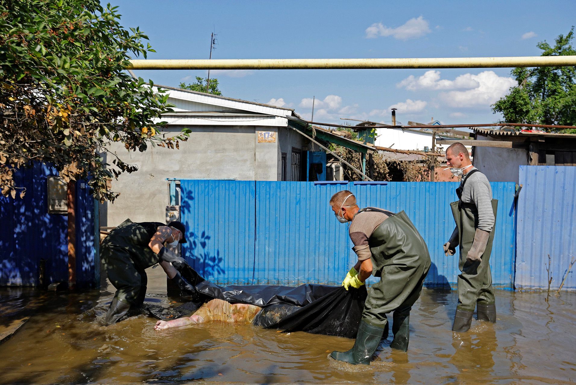 AP / Scanpix / LETA Разрушенная плотина Каховской ГЭС. 7 июня 2023 годаAlexander Ermochenko / Reuters / Scanpix / LETA Работники окоммунальных служб выносят из затопленного дома тело погибшего жителя города Голая Пристань в 90 километрах от Новой Каховки. 16 июня 2023 годаEvgeniy Maloletka / AP / Scanpix / LETA Жительница Херсона Татьяна со своими собаками Цацой и Чуней. 6 июня 2023 годаLibkos / AP / Scanpix / LETA Вид на затопленные районы Херсона. 7 июня 2023 годаFelipe Dana / AP / Scanpix / LETA Жительница Херсона Ирина с дочерью Любовью во время эвакуации. Они были вынуждены прятаться от обстрела, который начался, пока в затопленных районах города шли спасательные операции. 6 июня 2023 годаAlex Babenko / AP / Scanpix / LETA Два катера украинских морпехов на Днепре под Херсоном. 14 октября 2023 года