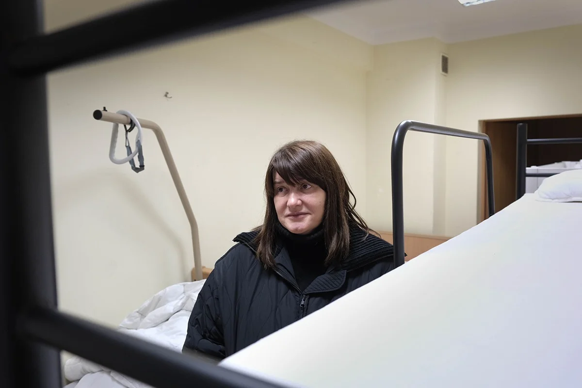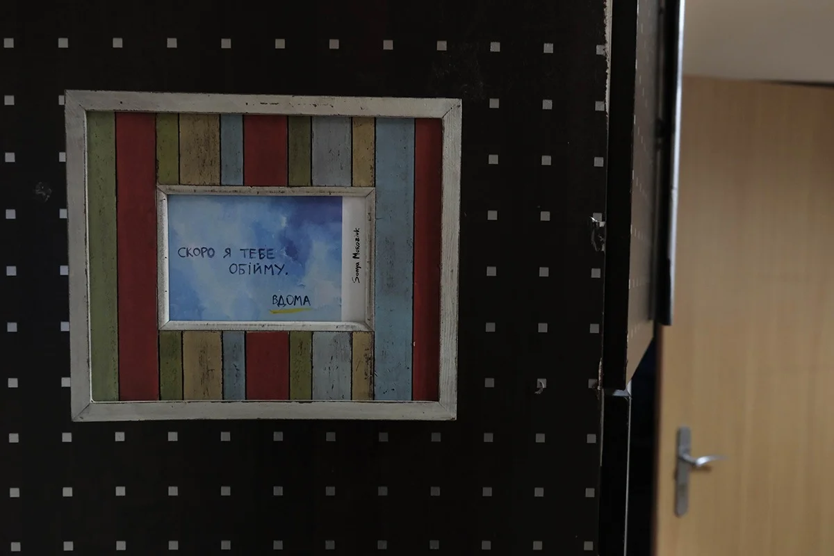 По правилам арендодателя здесь нельзя устанавливать дополнительные электрические приборы, поэтому в помещении не очень тепло. До комфортной температуры прогревается только одна комната с двумя кроватями. Туда заселяют мам с маленькими детьми. На стене у входа в общую кухню акварельная открытка в рамке: «Скоро я тебе обiйму. Вдома».