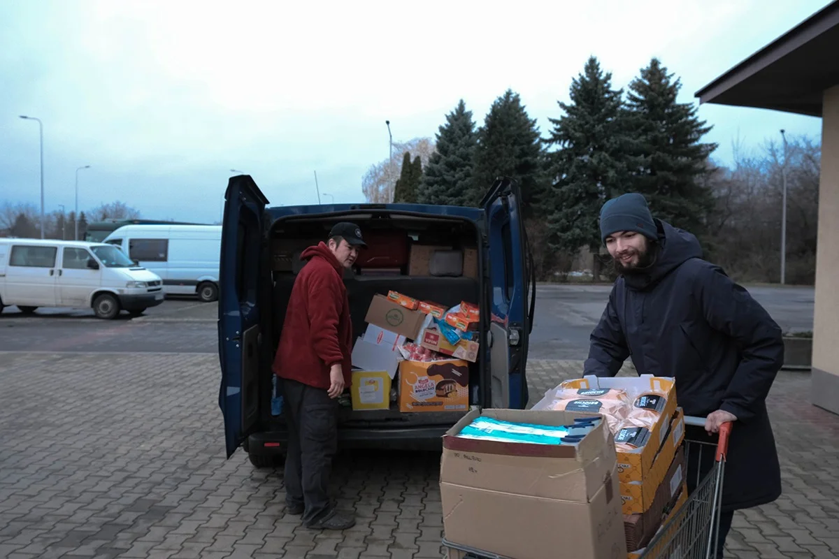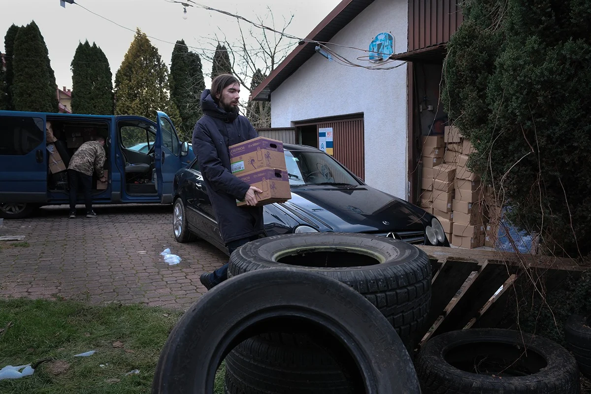 Партнеры RFU из Англии, тоже эмигрировавшие русские, собирают одежду и продукты, детские вещи и питание. Их пригоняют в Пшемысль на отданных бесплатно машинах. На парковке у шелтера все время номера из Уэльса, Шотландии, Ирландии, Англии. Гуманитарку выгружают и развозят по шелтерам, сортируют в посылки, машины перегоняют через границу и передают на нужды украинцев.