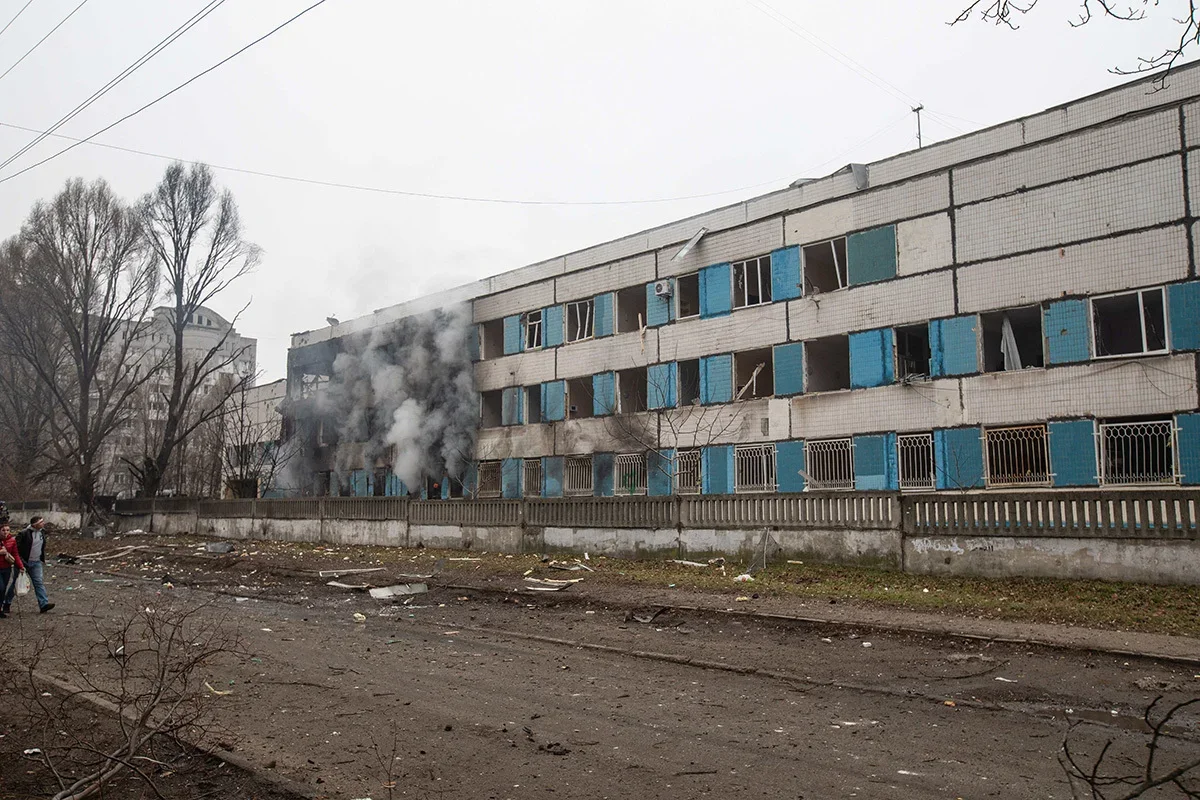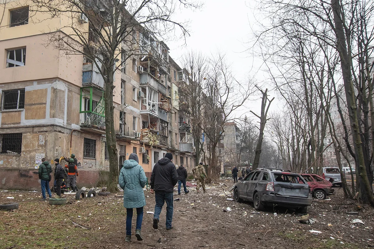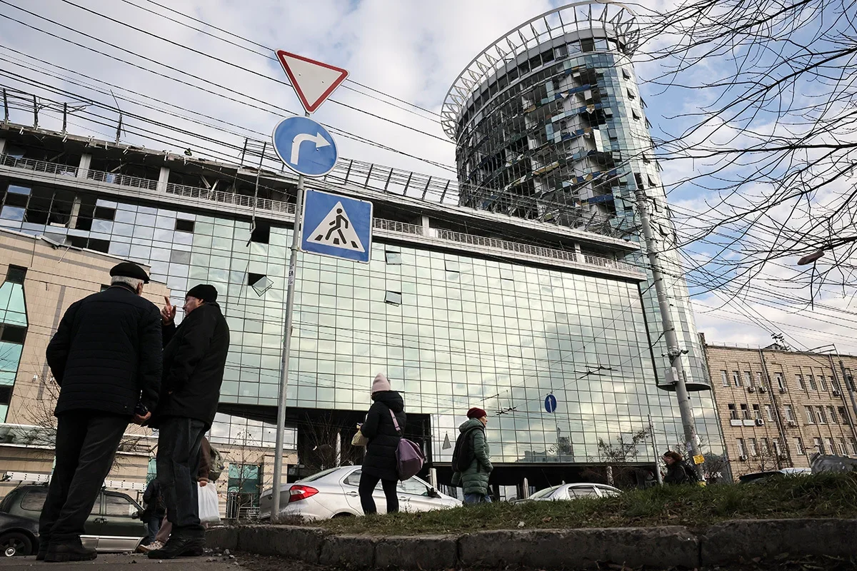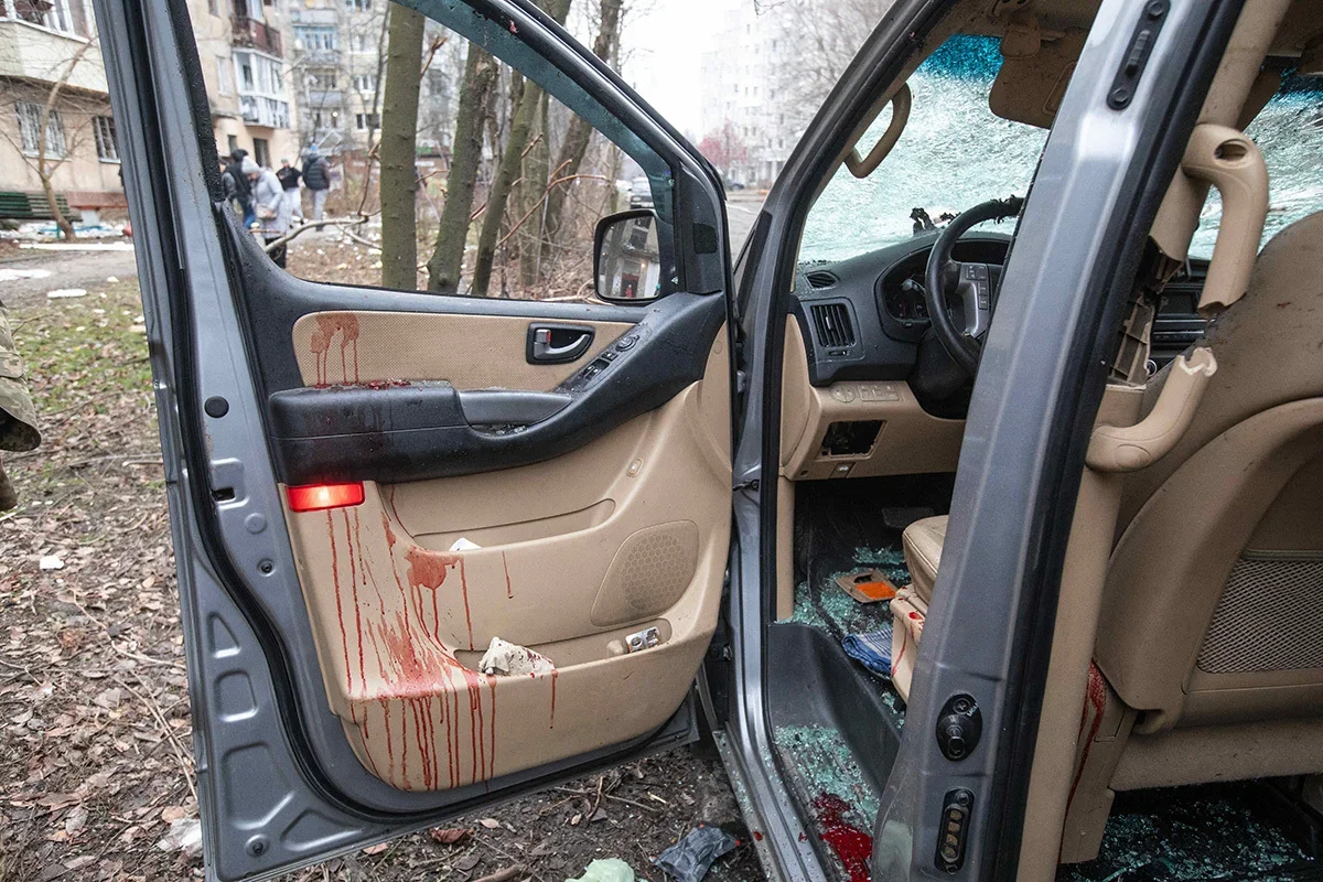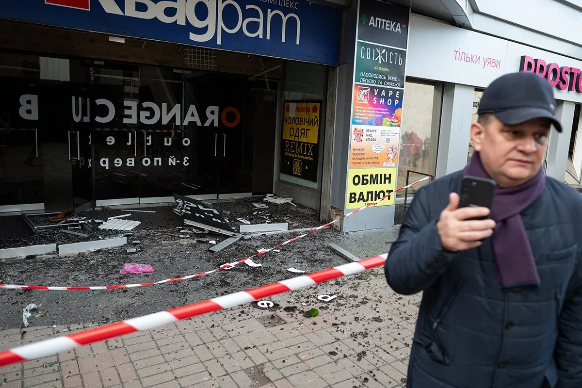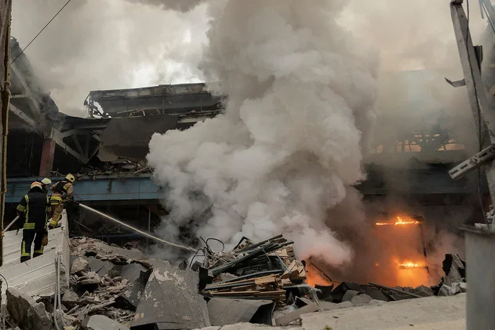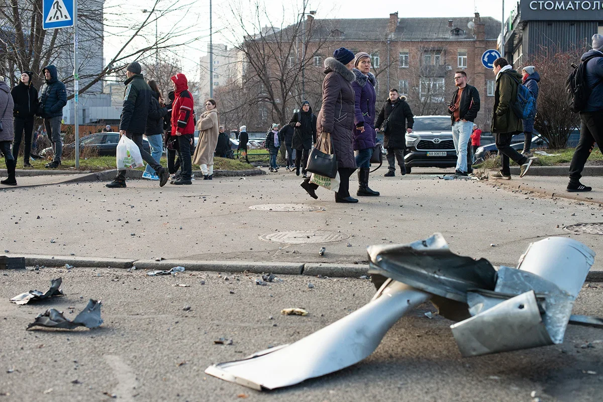 Ukrainian first responders on the site of a rocket attack on a factory in Kharkiv, 29 December. Photo: Yakov Lyashenko / EPA-EFEKyiv residents walk past a mangled Russian rocket, 29 December. Photo: Danylo Antoniuk / Anadolu / Getty ImagesLocals inspecting a residential building damaged by a rocket attack on a nearby shopping centre in Dnipro, 29 December. Photo: Arsen Dzodzaiev / EPA-EFEBuilding damaged by shelling in Kyiv, 29 December. Photo: Oleg Petrasiuk / EPA-EFEA man stands outside a building damaged in the Russian attack on Kyiv, 29 December. Photo: Danylo Antoniuk / Anadolu / Getty ImagesA car with a smashed windscreen and blood stains after the missile strike on the centre of Dnipro, 29 December. Photo: Arsen Dzodzaiev / Anadolu / Vida PressA building damaged in the Russian missile strike on the centre of Dnipro, 29 December. Photo: Arsen Dzodzaiev / Anadolu / Vida PressA hospital damaged in the Russian missile strike on the centre of Dnipro, 29 December. Photo: Arsen Dzodzaiev / Anadolu / Vida Press