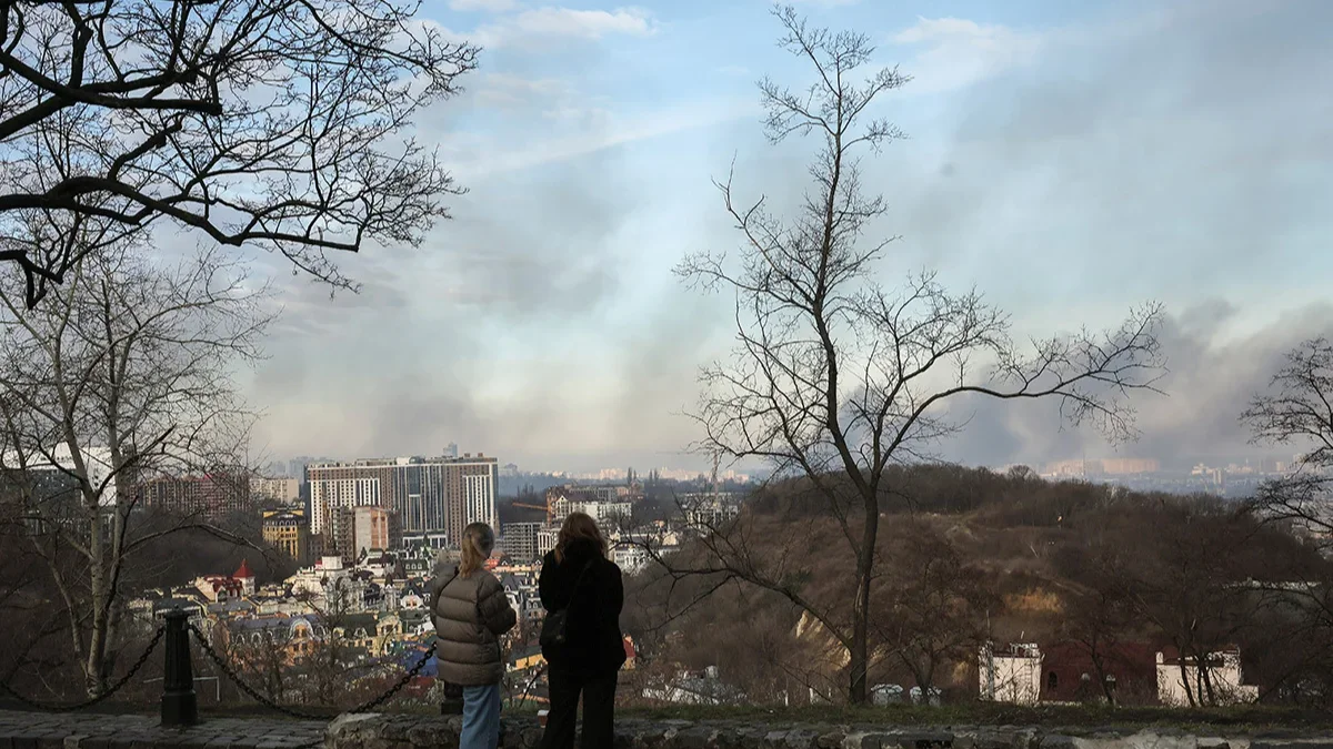 Smoke rising over Kyiv after the shelling, 29 December. Photo: Oleg Petrasiuk / EPA-EFE