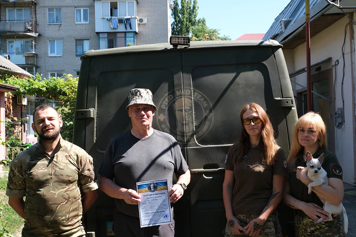 От них он получил похвальную грамоту. В ней написано: «Благодаря вашей поддержке мы можем оперативно оказывать качественную медицинскую помощь нашим бойцам и мирным жителям, пострадавшим от российской агрессии, а самое главное — приближать Украину к Победе».