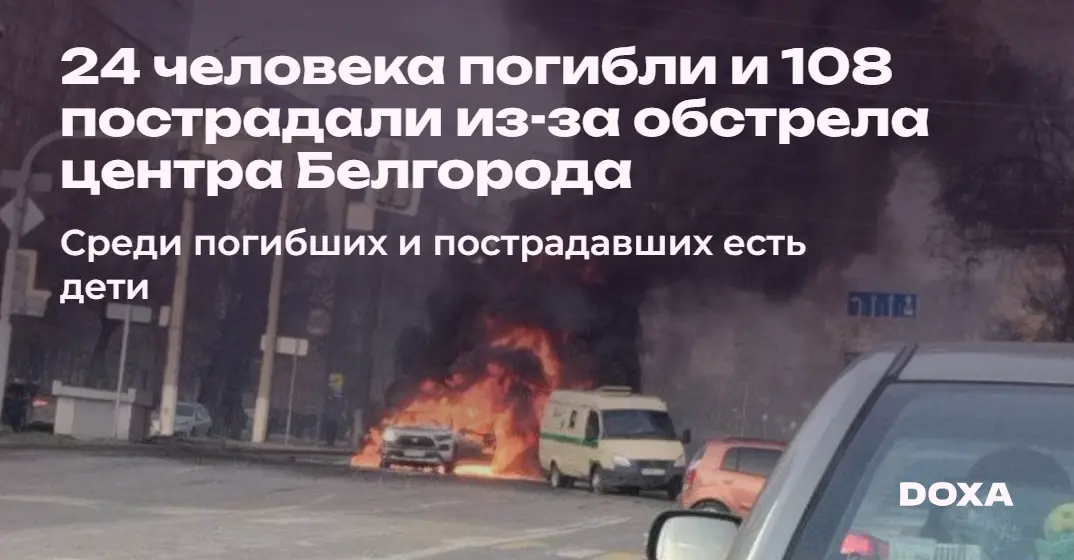 24 человека погибли и 108 пострадали из-за обстрела центра Белгорода