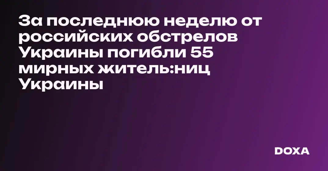 За минувшую неделю в Украине из-за обстрелов российской армии погибли 55 мирных житель:ниц, еще не менее 220 человек получили ранения.