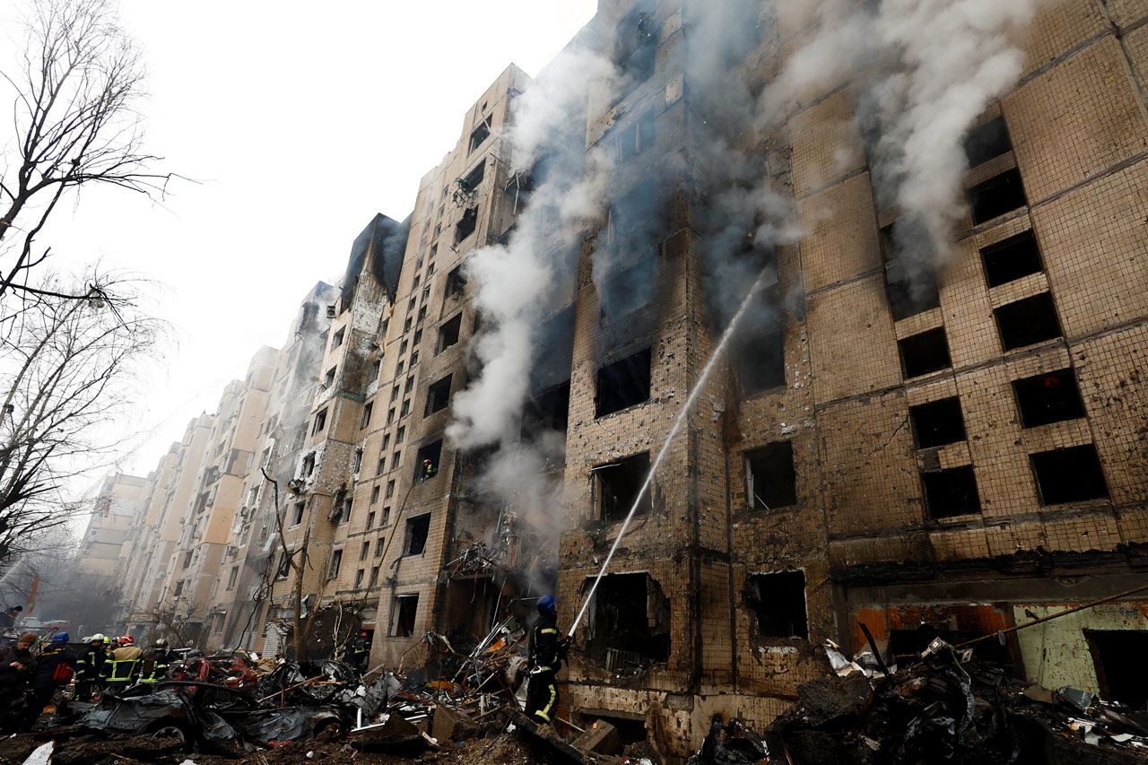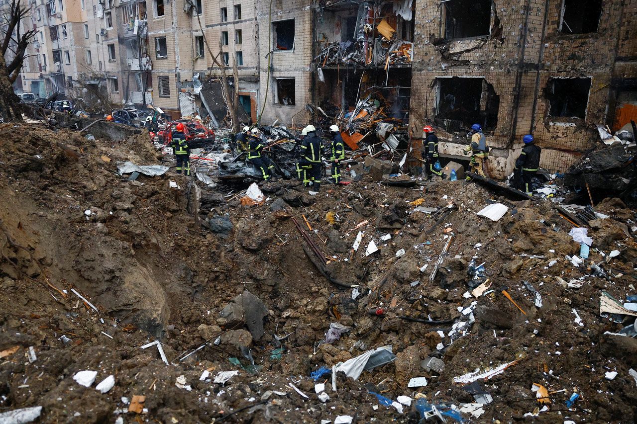 Российские войска 2 января нанесли массированный удар по Украине: по Киеву и Киевской области, Харькову и Кировоградской области. В результате атаки, по данным на момент публикации, погибли пять человек, больше 100 человек получили ранения. Больше всего пострадали Киев и Харьков. В Минобороны РФ заявили, что нанесли удар «высокоточным оружием» по предприятиям военно-промышленного комплекса Украины и что «цель удара достигнута». Посмотрите, каким было утро в атакованных городах.
