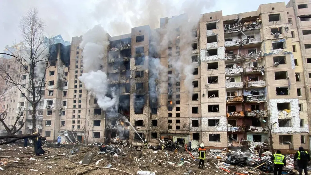 В результате российской атаки в Киеве загорелись два многоэтажных жилых дома в Соломенском районе, сообщает мэр города Виталий Кличко. 27 человек пострадали, погибла пожилая женщина.