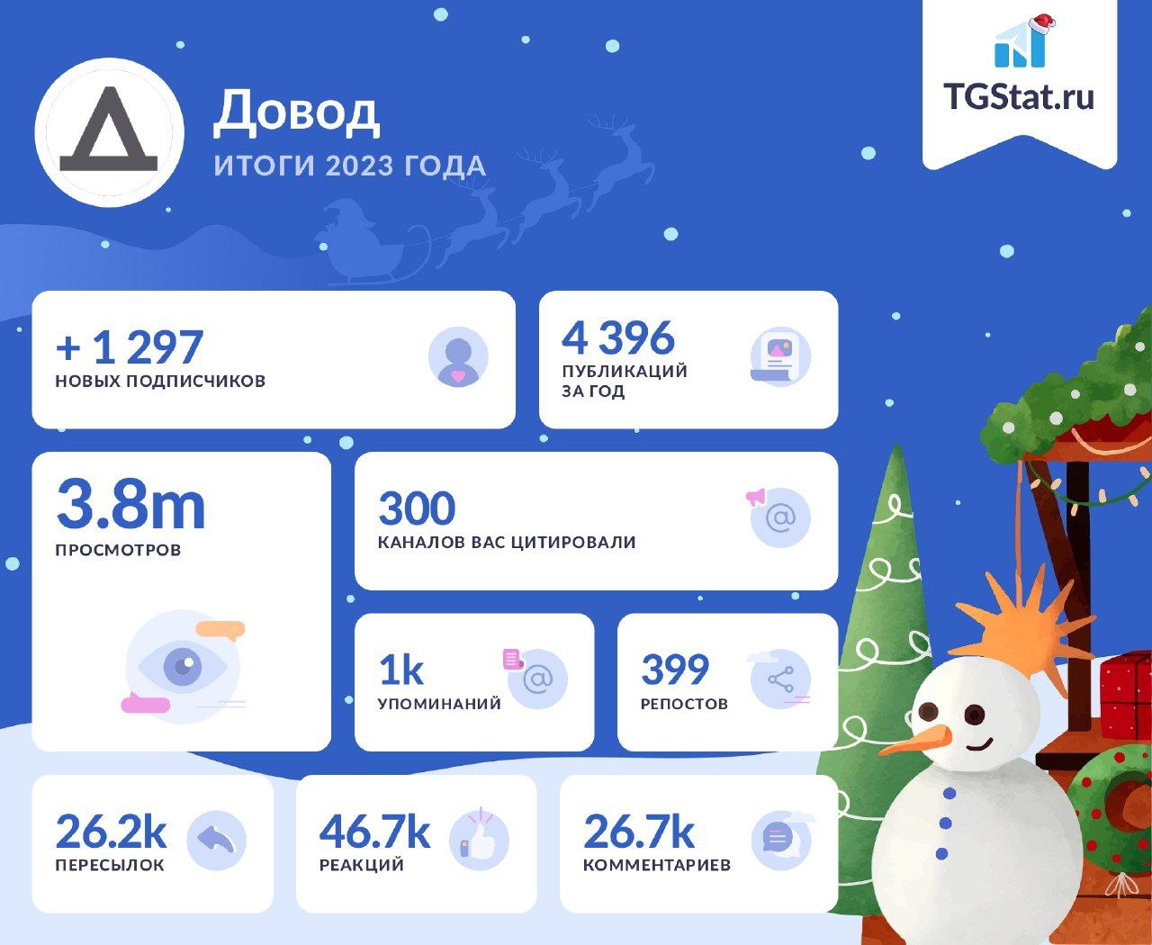 Особое внимание мы уделяем развитию нашего сообщества. Как результат, у нас выросло лояльное ядро аудитории — это не только наши постоянные читатели, но и наши источники и волонтеры. Некоторые из них регулярно помогают нам с поиском информации «на земле». Об увеличении вовлечённости аудитории также свидетельствует активность наших читателей в Telegram-канале, что подтверждается статистикой. За 2023 год читатели «Довода» написали под нашии публикацияи 26,7 тысяч комментариев и оставили 46,7 тысяч реакций.