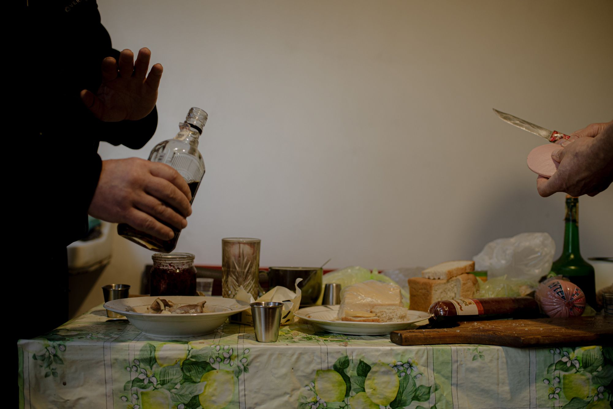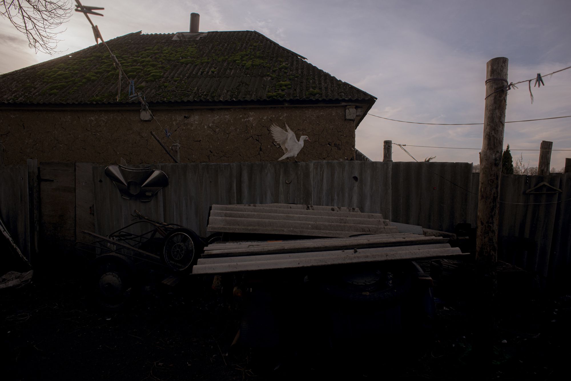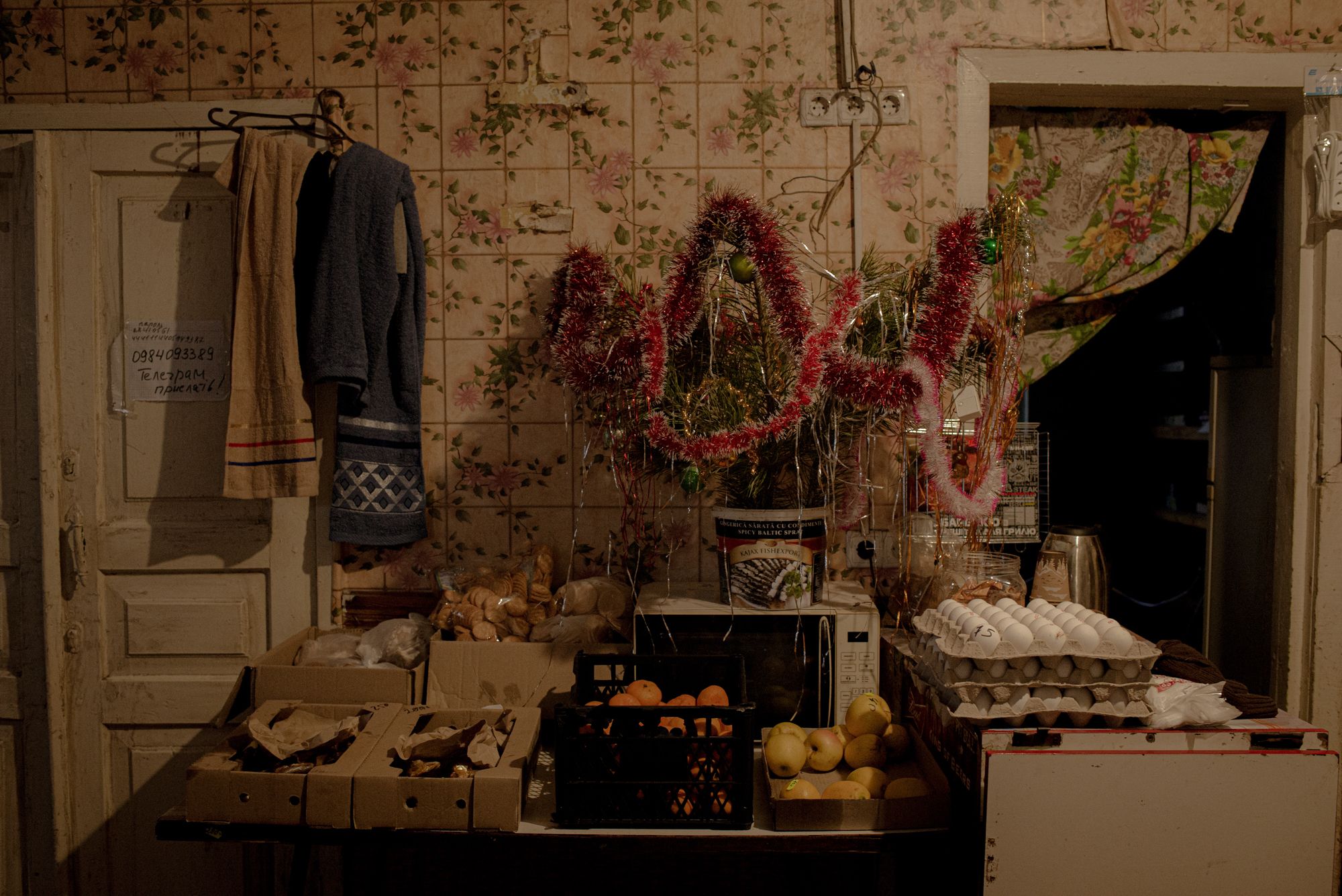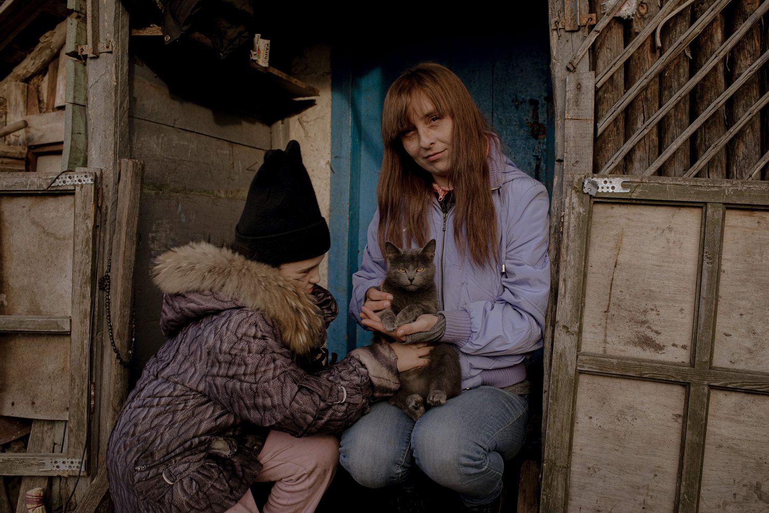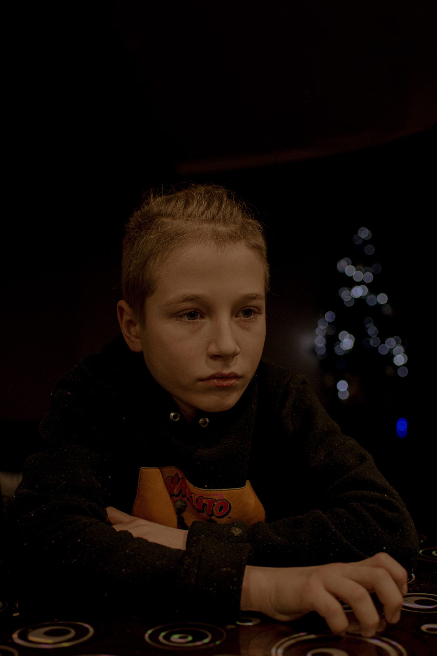 Село Симоновка, Чугуевского района Харьковской области. Никита, парень 12 лет, встречает 1 января в своем доме в 20 километрах от границы с Россией и в 60 километрах от Харькова.Симоновка — небольшое село, где по данным последней переписи населения в 2001 году проживало чуть более 300 человек. Мать Никиты Оксана, отец Дмитрий и сестра Кристина живут здесь в частном сельском доме. С начала российского вторжения 2022 года Симоновка, как вся часть Харьковской области к востоку от Северского Донца оказалась под оккупацией. Освободить село ВСУ смогли во время маневренного контрнаступления в сентябре 2022 года.Кристина играет во дворе своего дома. Как и многие дети в Украине Кристина и ее брат Никита учатся в школе онлайн. В Харьковской области все школы работают только в формате онлайн обучения, в самом городе несколько классов оборудованы на станциях метро.Новогоднее украшение в доме Оксаны и Дмитрия. 31 декабря и 1 января в доме не было света, так как линия электропередач была повреждена во время обстрела. Чтобы не остаться в темноте, семья пользуется в такие моменты фонарями на батарейках.Дмитрий, Оксана и их сын Никита в единственной комнате своего сельского дома. Помимо жилого пространства в доме есть лишь небольшая кухня. 1 января 2023 годаДмитрий вернулся домой c фронта на три дня, чтобы встретить Новый год вместе со своей семьей. Родных он не видел с апреля 2023 года, однако уже второго января ему пришлось вернуться на позиции в районе Курахово Донецкой области.Дмитрий и его сын Никита занимаются ремонтом во двореНикита во дворе своего домаКак и многие жители украинских сел, Оксана и Дмитрий держат собственное хозяйство: уток, цыплят и коз.Мотоцикл с коляской в одном из дворов в селе СимоновкаНовогодние украшения в магазине в Симоновке, 30 декабря 2023Дочь Оксаны и Дмитрия Кристина и их соседка ВикаПомимо домашней птицы, в доме Оксаны и Дмитрия живут кошки и собакаСеверский Донец в районе Печенежского водохранилищаПоселок Старый Салтов расположен на западном, правом берегу Северского Донца примерно в 50 километрах пути от Харькова. Старый Салтов, как и вся восточная часть области, был в российской оккупации с первых дней войны. Однако уже 2 мая 2022 года в ходе контрнаступления украинских войск поселок был освобожден, а линия контроля стала проходить по руслу Северского Донца. Такая ситуация сохранялась до сентября 2022 года, когда во время решительного маневренного наступления ВСУ отбросили ослабленные российские войска почти до Купянска. Во время боев Старый Салтов был почти полностью разрушен.Автобусная остановка в Старом Салтове. Местный житель Саша везет домой новогоднюю елку, 30 декабря 2023Жители Старого Салтова и их домашние питомцыСтарый Салтов, 30 декабря 2023. Разрушенный Храм Веры, Надежды, Любви и матери их Софии. Фундамент нынешнего храма был заложен в 2010 году, к 2019 году завершились основные строительные работы и он уже действовал. На продуктовом магазине видны следы от прежней вывески, написанной по-русски.Продавщица Марина в продуктовом магазине в центре Старого Салтова.Жители Старого Салтова Вадим и Александр за праздничным столом, 31 декабря 2023Поврежденная обстрелом пластиковая скульптура у входа в магазин в Старом Салтове.Внутри одного из домов, пострадавших от обстрелов в поселке Старый СалтовРемонт разрушенного дома в посе