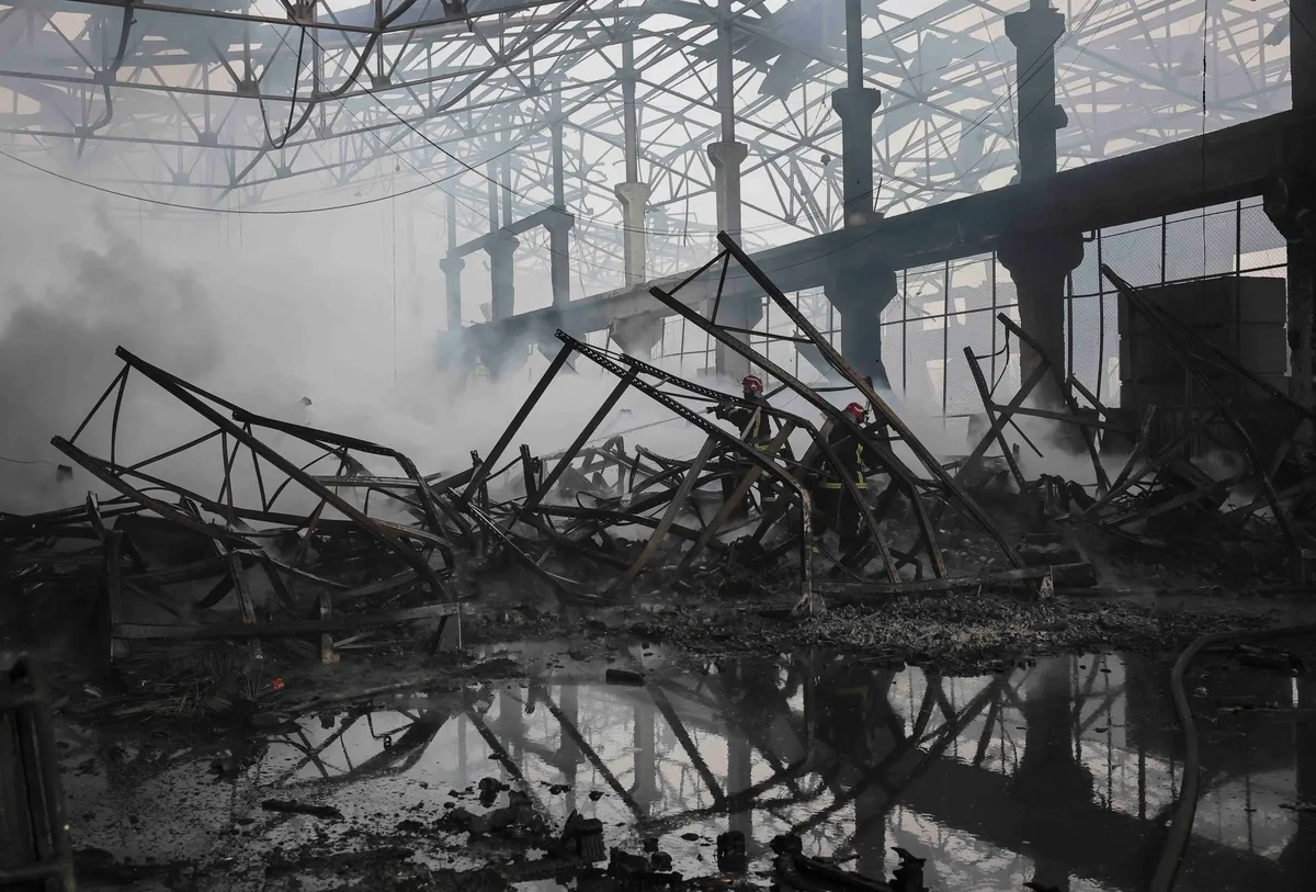 Пожар после обстрела Киева, 2 января 2024 года. Фото: EPA-EFE / OLEG PETRASYUK