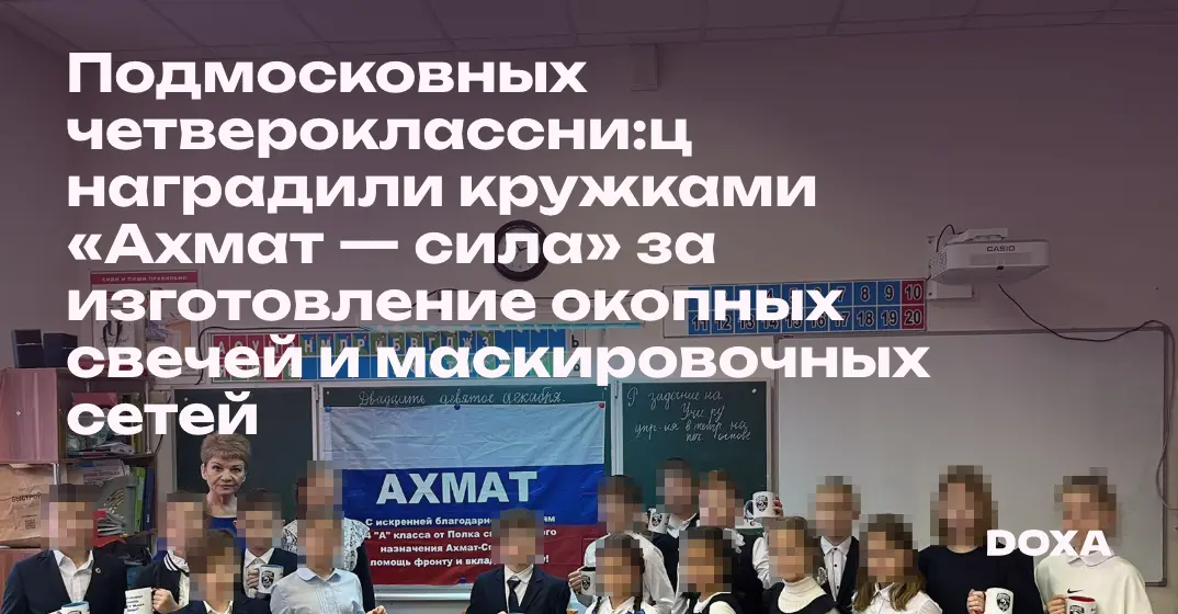 Подмосковных четвероклассни:ц наградили кружками «Ахмат — сила» за изготовление окопных свечей и маскировочных сетей