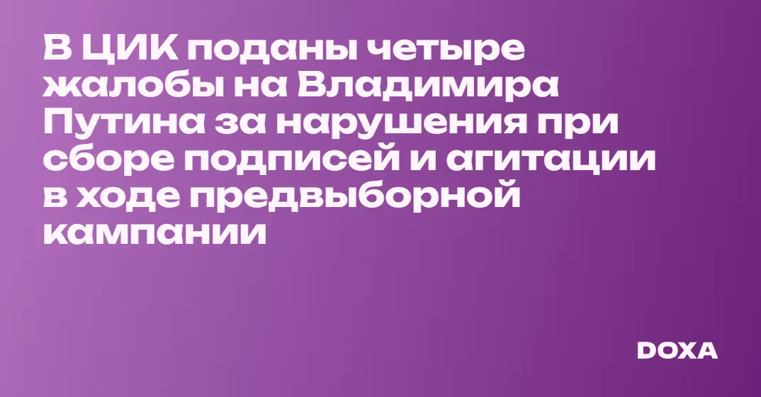 В ЦИК поданы четыре жалобы на Владимира Путина за нарушения при сборе подписей и агитации в ходе предвыборной кампании