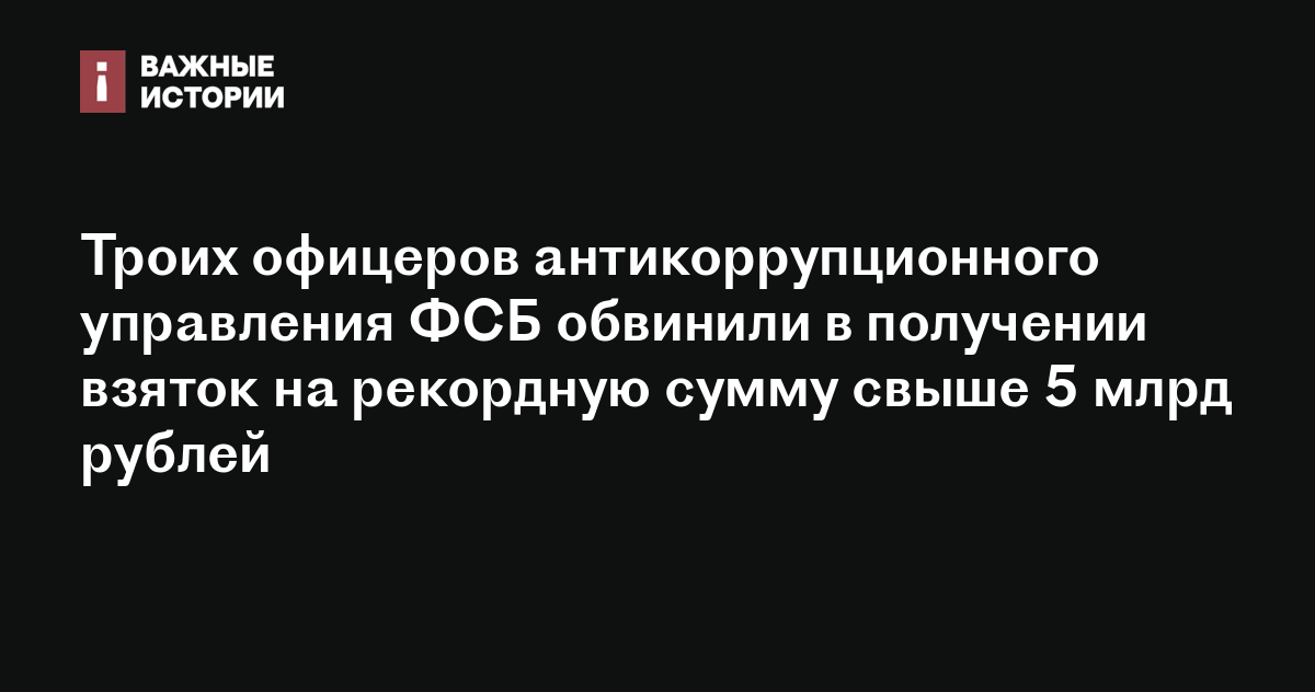 Троих офицеров антикоррупционного управления ФСБ обвинили в получении взяток на рекордную сумму свыше 5 млрд рублей