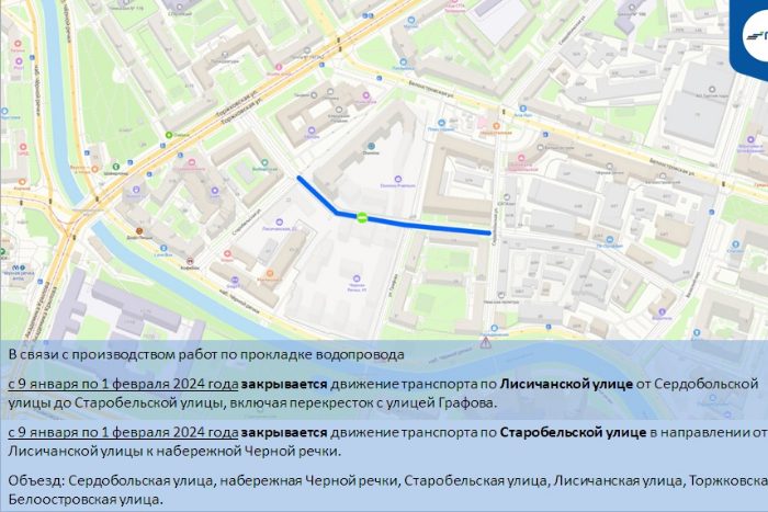 - С 9 января по 1 февраля — по Лисичанской улице от Сердобольской улицы до Старобельской улицы, включая перекресток с улицей Графова.