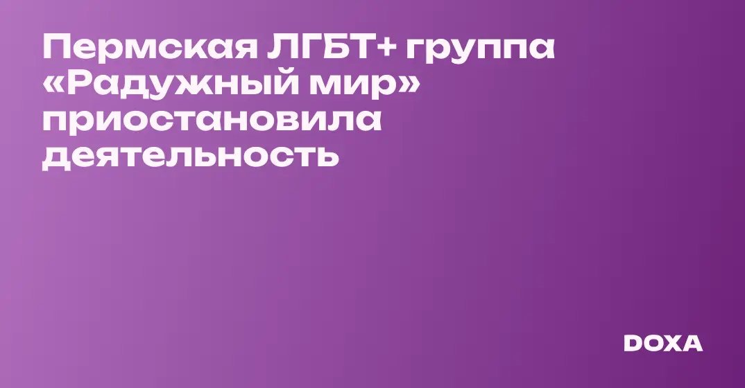 Руководитель:ницы пермской инициативной ЛГБТ+ группы «Радужный мир» заявили о приостановке деятельности, сообщает Activatica со ссылкой на закрытый телеграм-канал организации.