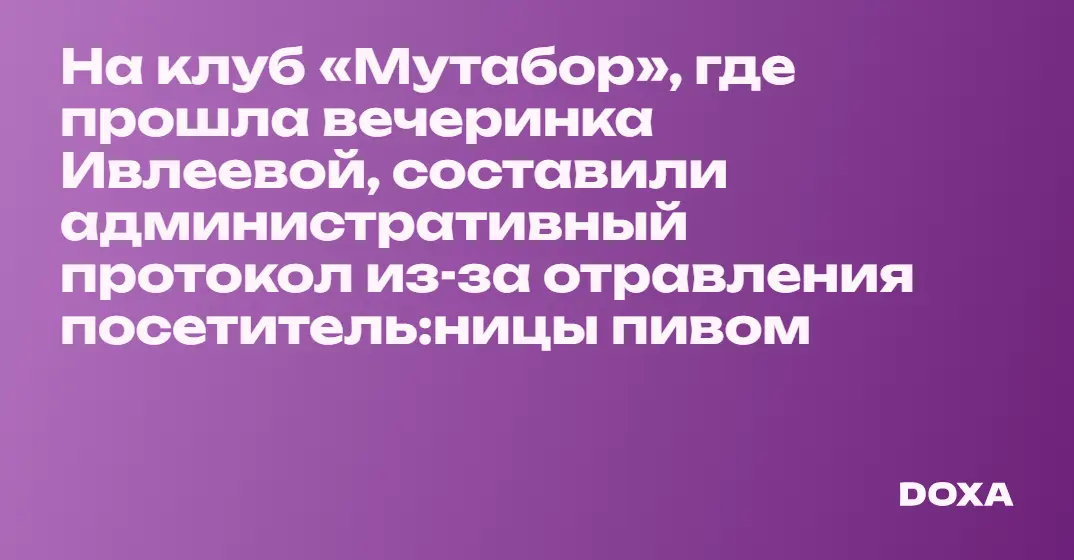 На клуб «Мутабор», где прошла вечеринка Ивлеевой, составили административный протокол из-за отравления посетитель:ницы пивом