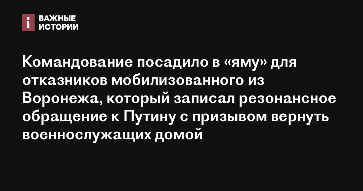 Командование посадило в «яму» для отказников мобилизованного из Воронежа, который записал резонансное обращение к Путину с призывом вернуть военнослужащих домой