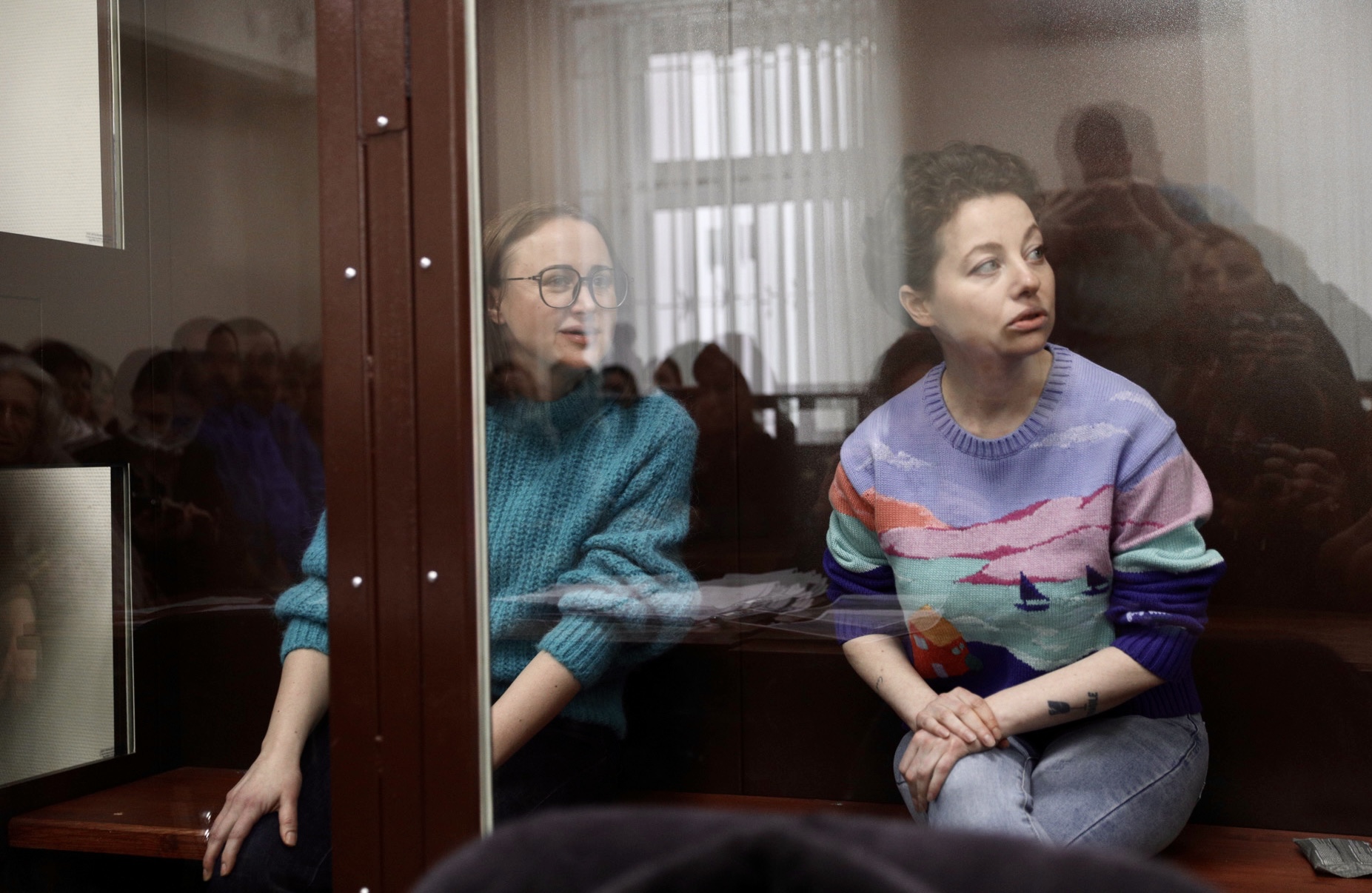 Светлана Петрийчук (слева) и Евгения Беркович в суде. Фото: Александра Астахова / Медиазона