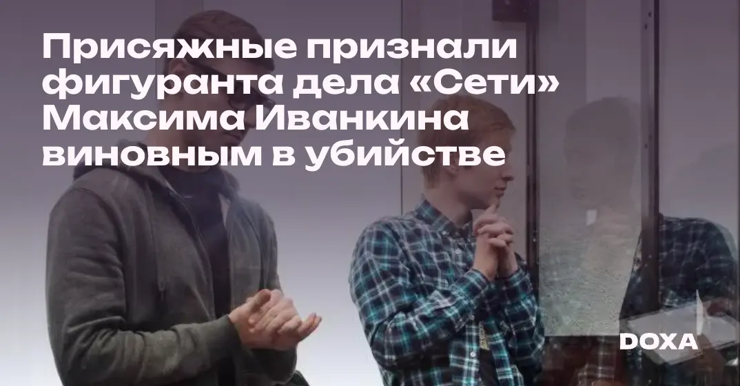 Присяжные в Рязанском областном суде единогласно признали Максима Иванкина, фигуранта дела «Сети», виновным в убийстве двух человек. Ранее он был осужден на 13 лет по делам о сбыте наркотических веществ и участии в сфабрикованной террористической организации «Сеть».