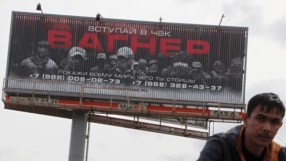 PMC Wagner advertising billboard in Podolsk. Photo: EPA-EFE/MAXIM SHIPENKOV