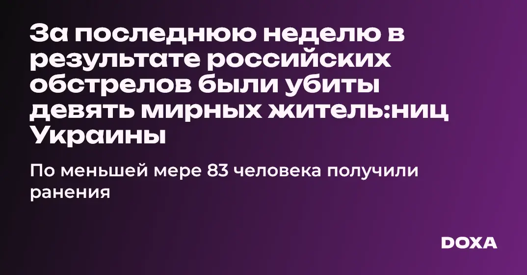 За последнюю неделю в результате российских обстрелов были убиты 13 мирных житель:ниц Украины