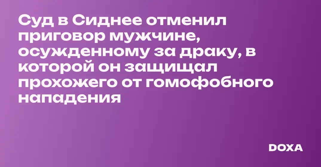 Суд в Сиднее отменил приговор мужчине, осужденному за драку, в которой он защищал прохожего от гомофобного нападения