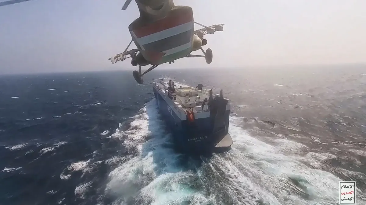 На снимке, предоставленном Медиа-центром хуситов, захват грузового корабля Galaxy Leader 19 ноября 2023 года. Фото: AP / TASS