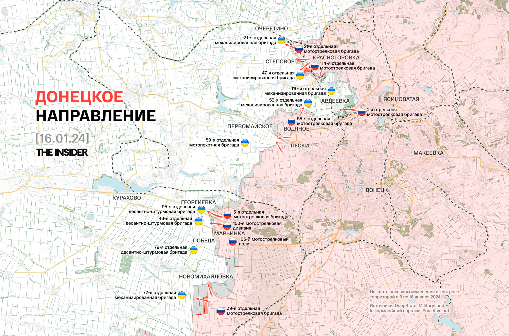 Украинский военный обозреватель Константин Машовец ранее сообщал, что части ВСУ полностью вышли из Степового, а россияне продвигаются за террикон Авдеевского коксохимического завода. По его данным, части ВСУ начали отход и от Новомихайловки южнее Марьинки, опасаясь полного окружения.