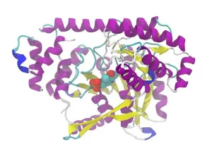 Вот это вот повторное использование «кирпичиков» после распада целого белка или целой молекулы нуклеиновой кислоты — тоже важная часть их жизненного цикла внутри живых организмов. Насколько мы можем судить, для жизни нужны полимерные молекулы, способные сворачиваться в трехмерные структуры, как белки, потому что это нужно для важнейшей функции большинства белков — для катализа. Большинство белков — это ферменты, т. е. ускорители определенных химических реакций, специфичные ускорители. Белковый катализ гораздо более специфичен, чем катализ разными малыми молекулами, комплексами металлов и т. д. Специфичность достигается за счет того, что белковый клубок — белковая молекула — имеет «карманы» для реагирующих внутри нее маленьких молекул определенной формы, которые позволяют им подойти друг к другу только определенной стороной и никакой другой, а заодно изолируют их от других молекул, норовящих вмешаться в эту химическую реакцию, — в том числе, как ни странно, и от воды, от которой во многих случаях биохимические реакции приходится «прятать» внутри фермента.