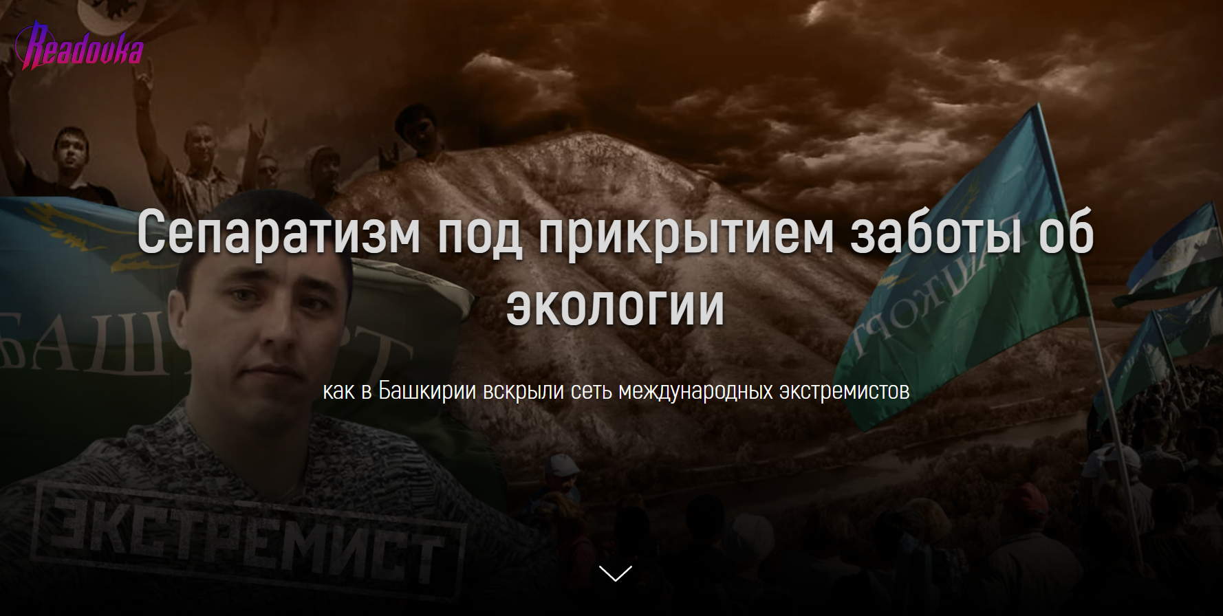 - Пропагандистское издание Readovka опубликовало у себя на сайте текст о «вскрытии сети международных экстремистов» в Башкортостане, написанный провластным политологом Владимиром Киреевым (на фото скриншот обложки текста). Киреев обвинил Алсынова в том, что он экологическими протестами мешал бизнесу работать. Кроме того, автор текста предположил, что общественник является «куратором на месте» Комитета башкирского сопротивления, который, по его данным, несет ответственность за поджоги офисов «Единой России» и КПРФ.