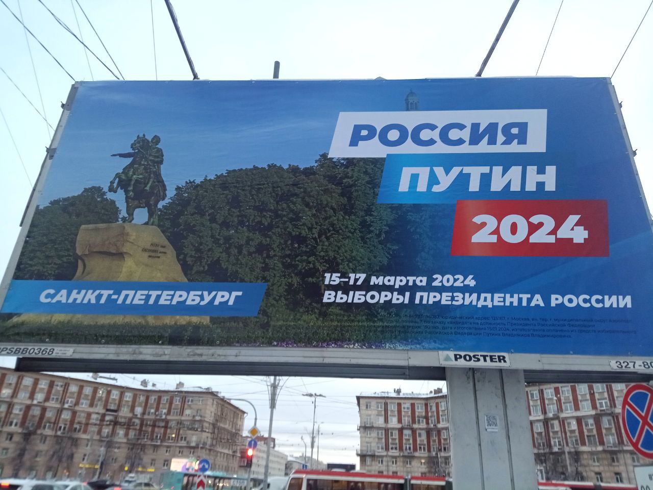 В Петербурге разместили 150 предвыборных баннеров Владимира Путина, сообщил читатель «Бумаги».