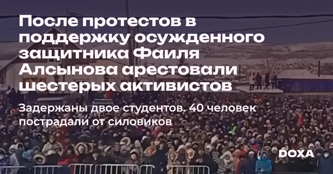 В городе Баймак после протестов в поддержку Фаиля Алсынова 15 января суд арестовал шестерых активистов, которые пришли к зданию суда. Им присудили от 10 до 13 суток. Кроме того, сегодня, 18 января, силовики задержали двоих студентов.