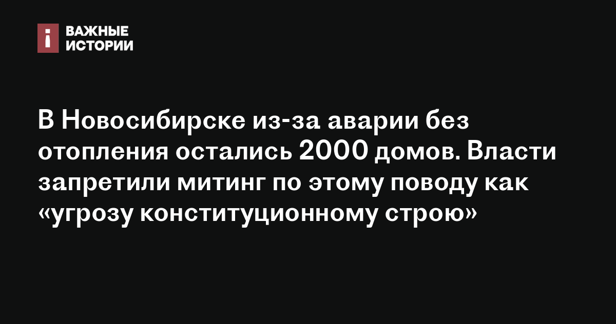 В Новосибирске из-за аварии без отопления остались 2000 домов. Власти запретили митинг по этому поводу как «угрозу конституционному строю»