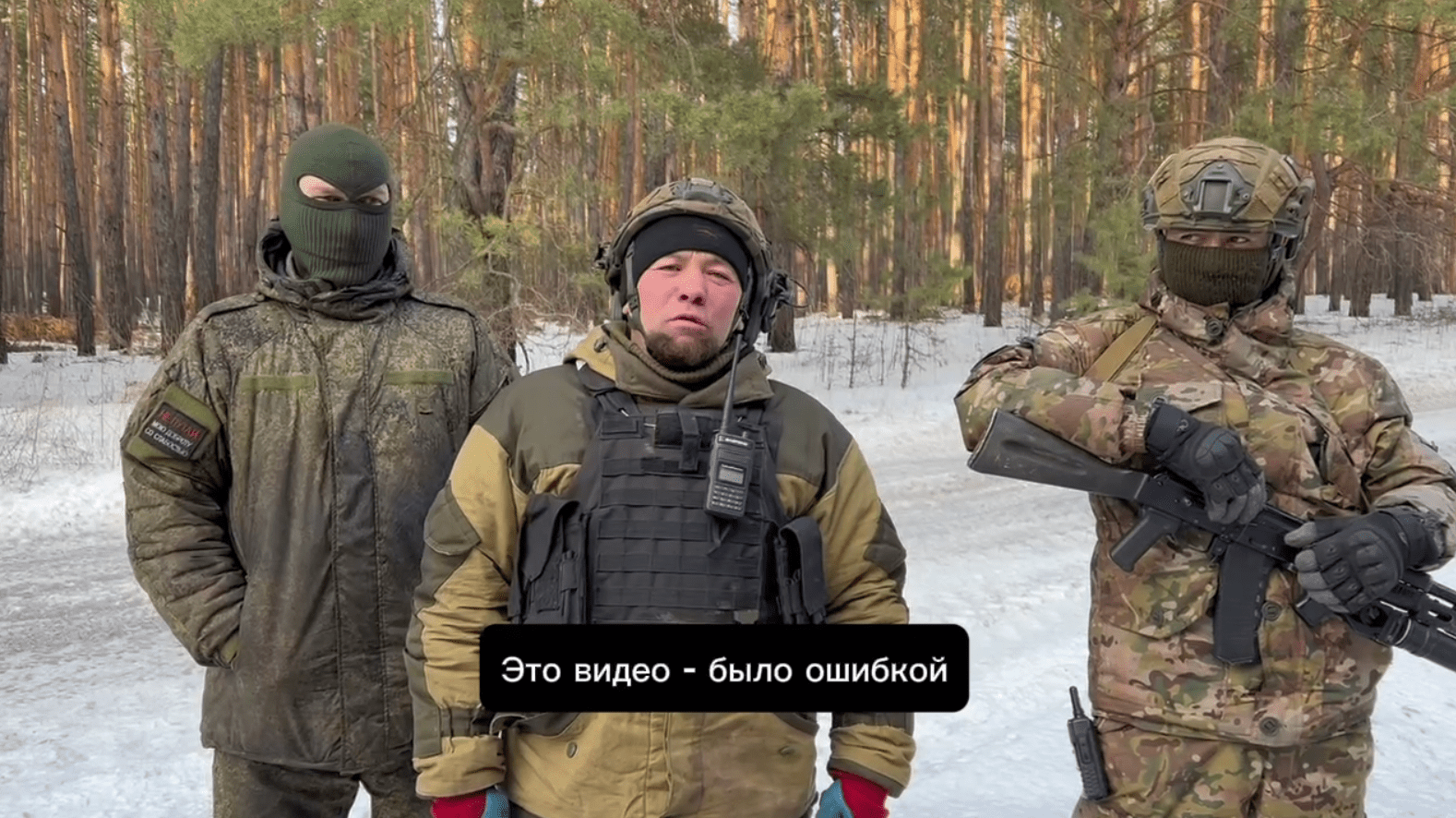 Детали. Видео с участником войны в Украине 18 января опубликовал канал башкирских батальонов, сформированных властями республики. Ролик смонтирован из двух видео. На первом четверо мужчин в военной форме, с оружием и закрытыми лицами говорят слова поддержки Алсынову, на втором – мужчина в форме уже с открытым лицом и без оружия говорит, что совершил ошибку, поддержав Алсынова. При этом за спиной у мужчины стоят два человека: один с автоматом, второй что-то подсказывает ему (на 47-й секунде).
