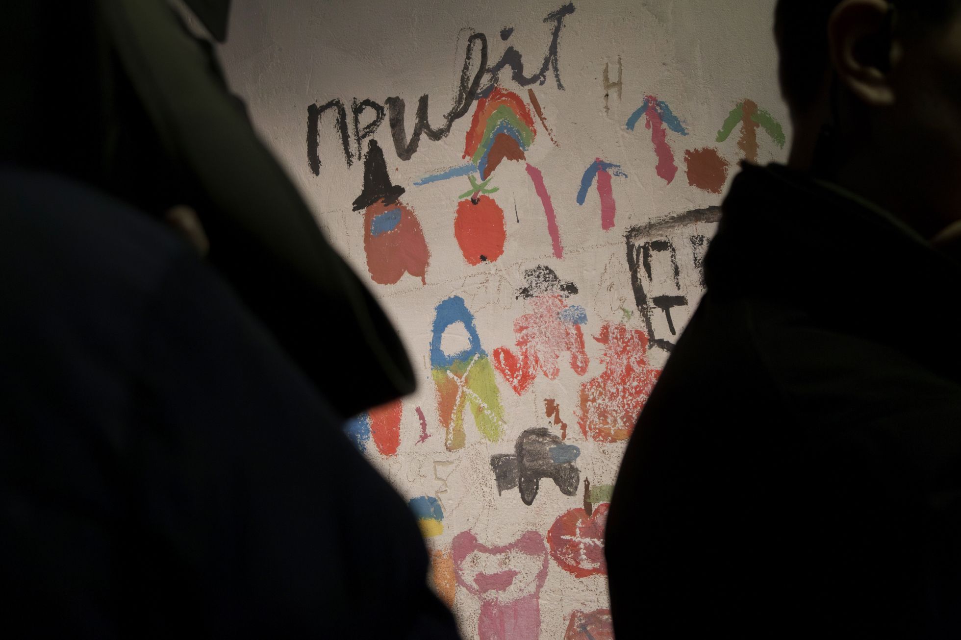 Детские рисунки в подвале школы в Ягодном Черниговской области, где российские военные держали мирных жителей